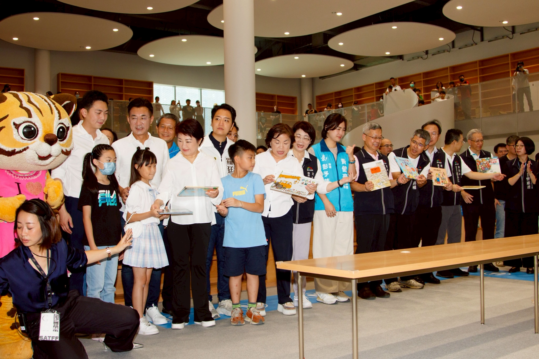 今日上架活動現場有石虎家族與人氣角色貓貓蟲咖波氣偶同樂,書香滿溢、笑聲不斷。包括市長盧秀燕、立法院副院長江啟臣、立法委員楊瓊瓔、廖偉翔、羅廷瑋、市議員劉士州、文化局長陳佳君、建設局長陳大田、新聞局長欒治誼、文化局副局長施純福、建設局副局長陳永欣、教育局副局長郭明洲、新建工程處長陳聰仁、台中市立圖書館長曾惠君、台中市立美術館長賴依欣、西屯區公所區長鄭錫禧、台中市工商發展投資策進會幹事顏建程、西屯區漢口國中校長羅國俊、清水區大楊國小校長陳盈達、南屯區文山國小校長楊敏芸、北屯區文心國小校長柯志明、北屯區四張犁國中校長商永齡、西屯區東海國小校長林筆藝等嘉賓皆到現場;立法委員黃健豪、市議員黃馨慧、黃守達,西屯區上石國小及台中市閱讀教育輔導團也都派代表共襄盛舉。(10/19*8)*文化