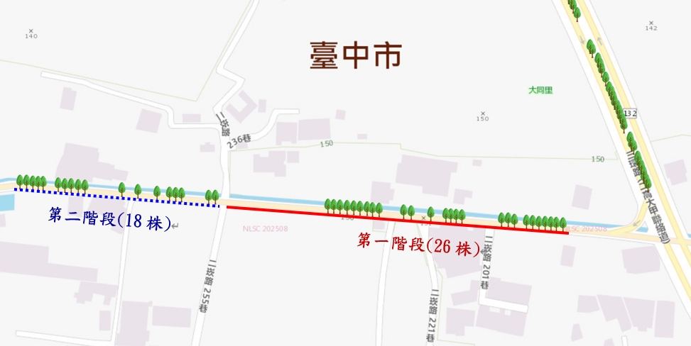 建設局表示,此次黑板樹及路面改善工程採取兩階段辦理,第一階段範圍為二崁路(三環路至二崁路236巷)26株,已於10月16日完成移植,並於近期完成路面燙平作業;第二階段18株則預計於明(115)年第一季辦理移植及燙平作業;建設局強調,市府以市民安全為首要原則,施工期間將加強交通引導與維持措施,並同步改善路肩整平,提供人車安全通行環境,兼顧市容景觀與生態綠化,實踐「富市台中 行人安全」願景。(10/21*15)*建設局