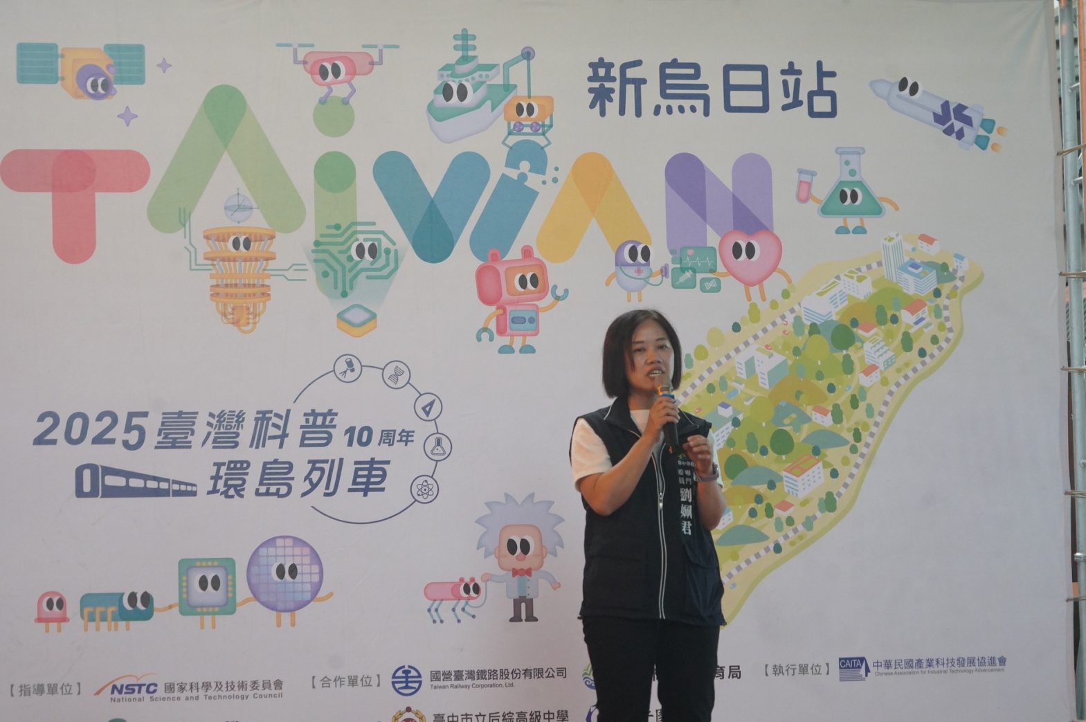 「2025 台灣科普環島列車」十周年台中場於昨(20)日熱鬧登場!台中市政府教育局攜手台中市各級學校、大葉大學及科研機構、法人與企業,在大甲車站與新烏日車站同步舉辦「車站玩科學」市集,串聯前瞻科技、永續環境、淨零減碳等主題闖關,兩站合計參與人數超過1,600人,親子與師生共學共玩,現場氣氛熱烈。