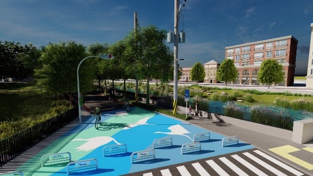觀旅局長陳美秀表示,旱溪河岸兩側吸引許多市民散步、運動及騎乘自行車,為提升民眾通行安全,市府特別爭取經費辦理人行空間改善工程,主要施作項目包括人行道鋪面全面更新、無障礙設施改善及景觀綠美化,並於道路兩端設置「人行優先區」及導引牌面,提供兼具安全、休憩與景觀特色的友善步行環境;工程已於今年10月開工,預計明年4月完工,完工後將串聯右岸豐原大道人行空間及沿線休憩節點,並命名為「旱溪水岸阿勃樂道」,象徵金黃花海與豐原在地人文意象。