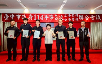 台中市是全國第二大城市,位居中部交通及經濟樞紐,市府警察局持續以治安守護為主軸,規劃各項具體對策,市長盧秀燕今(22)日召開治安會報及公安會報聯合會議,親自頒發感謝狀表揚成功阻詐的相關人員,感謝「城市英雄」見義勇為、一同打造更安全宜居的城市。