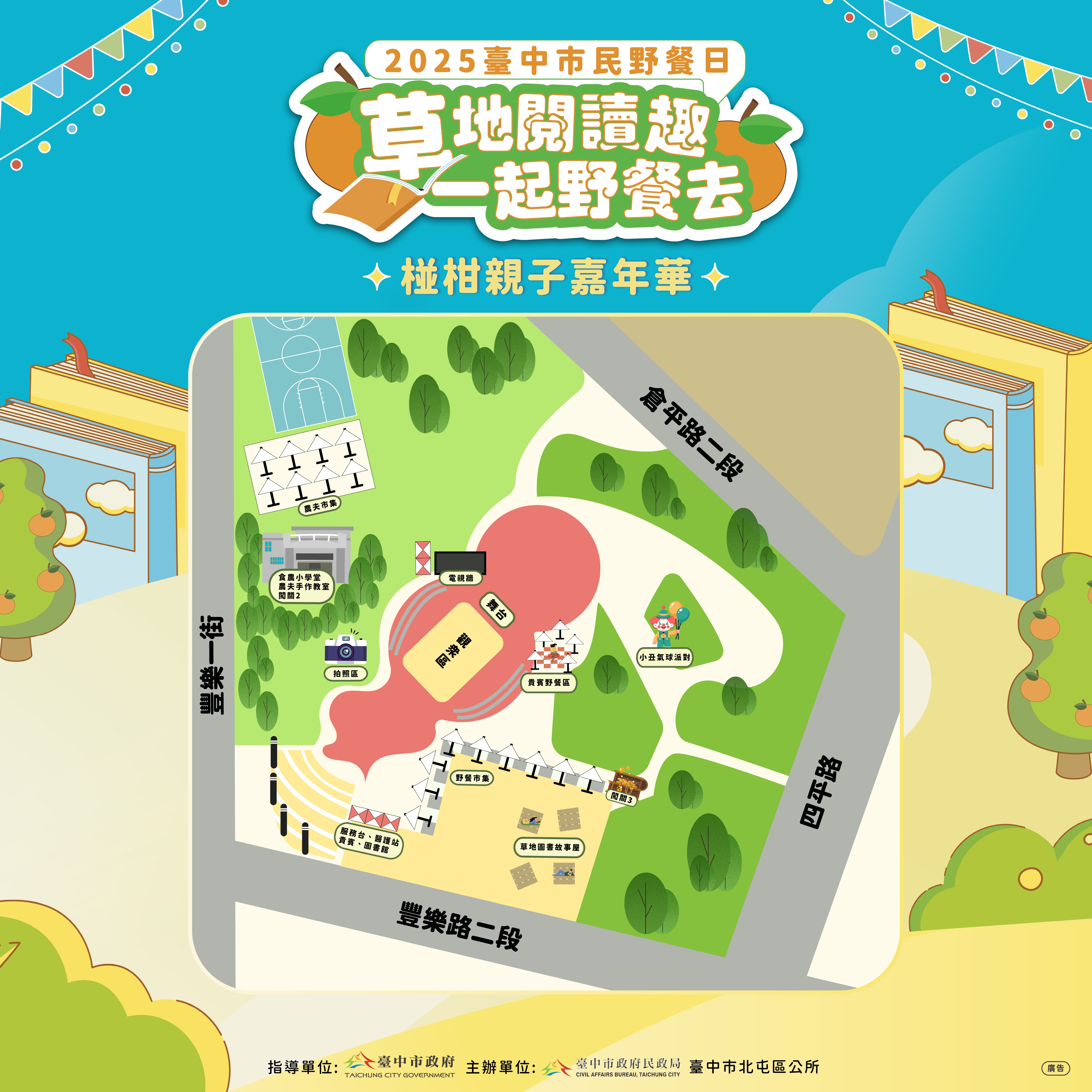 北屯區公所補充,活動當日北屯最萌吉祥物「椪柑猴・一橘棒」也將熱情現身,與大小朋友一同玩遊戲、動手做手作,並學習柑橘的生長過程,透過這些互動體驗,讓民眾了解從土地到餐桌的食物來源,同時推廣香甜可口的大坑椪柑。此外,現場還有闖關集章活動,完成任務即可兌換好禮,包括適合野餐時光享用的新鮮柑橘、柑橘蛋糕與野餐摺疊椅,更多活動詳情可至北屯區公所臉書粉絲專頁(https://www.facebook.com/beitun.gov)查詢。