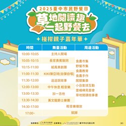 吳局長指出,台中市民野餐日自舉辦以來深受市民喜愛,不僅倡導健康生活與親近自然的理念,更促進社區交流與家庭互動。今年野餐日以「草地閱讀趣.一起野餐去」為主題,四張犁公園設有多個主題活動區,滿足不同年齡層的需求,讓民眾在音樂、閱讀與自然間享受悠閒野餐時光。此外,北屯場更推出早鳥好康,1027日上午11時起開放ACCUPASS平台線上登記( https://reurl.cc/oYOx5l ),成功報名者活動當日上午10時至11時,憑報名確認郵件與身分證件可至服務台領取限量「野餐摺疊椅」。