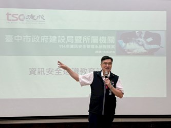 台中市政府積極導入人工智慧(AI)、大數據與智慧感測技術於市政治理與便民服務,致力打造宜居、幸福與永續的智慧城市。市長盧秀燕重視市政推動成果及市府整體資訊安全環境,為因應科技應用所帶來的資安風險、個人資料外洩及駭客攻擊等挑戰,台中市政府建設局昨(22)日舉辦「114年度資通安全教育訓練」,建設局由副局長顏煥義代表局長陳大田至現場致詞勉勵同仁,期待透過邀請專家講授分享實務資安課程,以提升同仁資訊安全意識與實務操作能力。