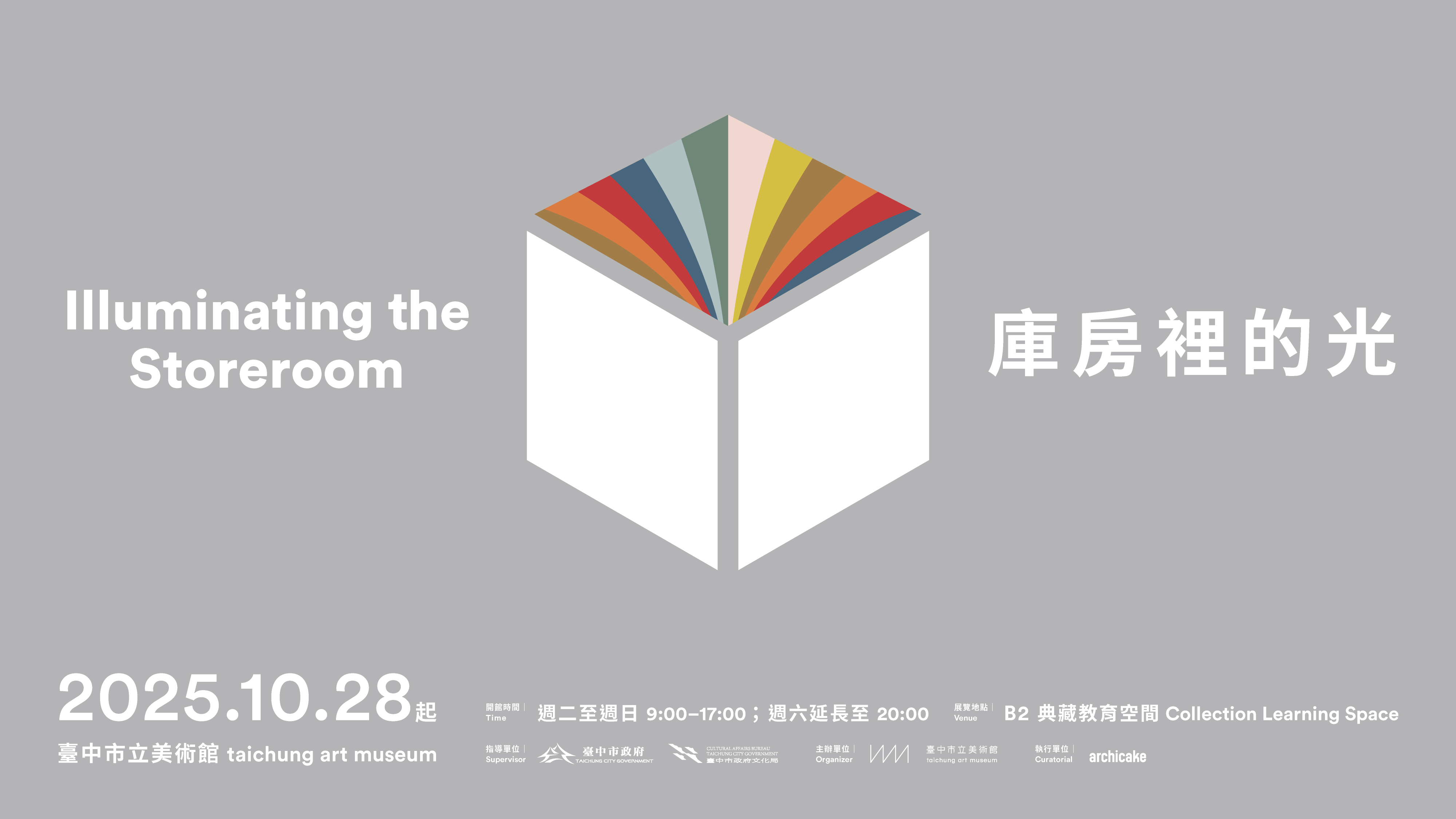 典藏教育展「庫房裡的光」以綠美圖的建築特色「可視性庫房」為概念延伸設計,打破過往封閉的典藏印象,以三面連結庫房空間的落地窗讓觀眾得以窺見藝術保存的幕後日常。展覽以「光」為線索,象徵庫房的開啟,同時光也是創作的靈感,以及藏品入庫前環境檢測與作品檢視的重要工具,結合庫房展示與寓教於樂的互動體驗,揭示藝術作品從誕生、典藏到保存的生命歷程,引導觀眾認識中美館典藏品及典藏保存實務工作的豐富面貌。