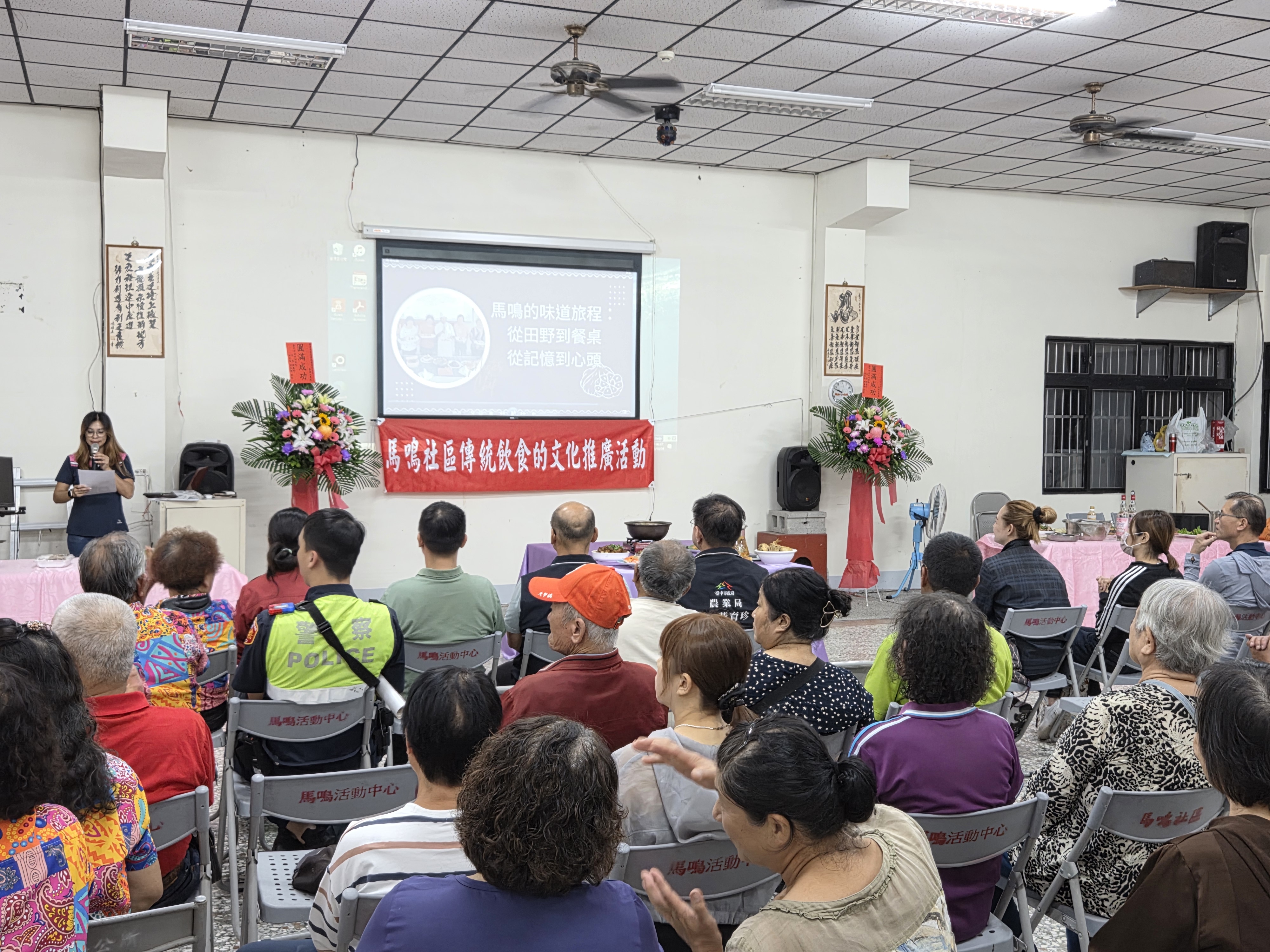 農業局指出,馬鳴社區主要以農業為核心,種植稻米、芋頭、蔬菜與茭白筍等農作物,社區運用在地食材辦理食譜開發研習課程,邀集居民重現辦桌菜與割稻飯的古早風味,讓長輩的手藝與故事得以延續。活動也透過飲食文化推廣成果展,以「吃在地、傳文化」為核心精神,展示地方特色料理及健康飲食創意料理。