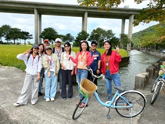 外埔戶所主任陳美素表示,外埔忘憂谷支線全長約12.6公里,沿途盡是廣闊的農田與自然景觀,被譽為「中部的伯朗大道」。此次聯誼活動以鐵馬之旅為主軸,讓參加者暫時拋開日常瑣事,在微風輕拂的鄉間小徑上,盡情欣賞金黃搖曳、穗實飽滿的稻田,感受大自然的療癒;中午大家齊聚品嚐帶有媽媽味的農村特色料理,一邊享受美食、一邊分享生活點滴,拉近彼此的距離;午後則前往布英熊文化創藝館,與新朋友一起動手體驗蝶古巴特手作,在歡笑與創意中讓彼此靠得更近,也為浪漫邂逅留下美好的回憶。