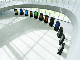 首位入館的台中市民余先生提到,從綠美圖興建時期便開始關注相關資訊,平時也追蹤綠美圖的Instagram,得知今日試營運特地一早前來排隊。他平時就喜歡逛美術館與欣賞建築風景,發現台中有全新美術館與圖書館共構的空間,就非常期待,今天親身感受藝術與閱讀融合的場域,認為這樣的文化空間讓台中更具國際城市的風貌。
