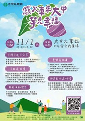 此次活動農會結合在地當季食材,從產地到餐桌,期望藉由體驗活動落實食農教育理念,讓參與民眾深入了解農業文化與食材來源,並帶動地方觀光與休閒農業發展,誠摯邀請全國民眾搭乘火車來到大甲,一同感受大甲芋頭的幸福滋味,體驗豐富多彩的農村魅力。(10/29*15)*農業局