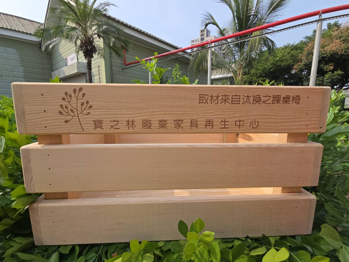 環保局說明,為讓大家在放鬆同時也能了解環保知識,寶之林團隊規劃靜態展示與動態體驗的宣導。靜態部分展出多項以廢棄家具或課桌椅回收再製的創意小物,包括再生木板凳、筆記本、隔熱墊、有寶筆等;動態則設有環保互動的「運動發電自行車」,讓大小朋友都能踩出電力,親身體驗「動能轉電能」的過程,進一步理解能源的珍貴與資源循環再利用的重要性。
