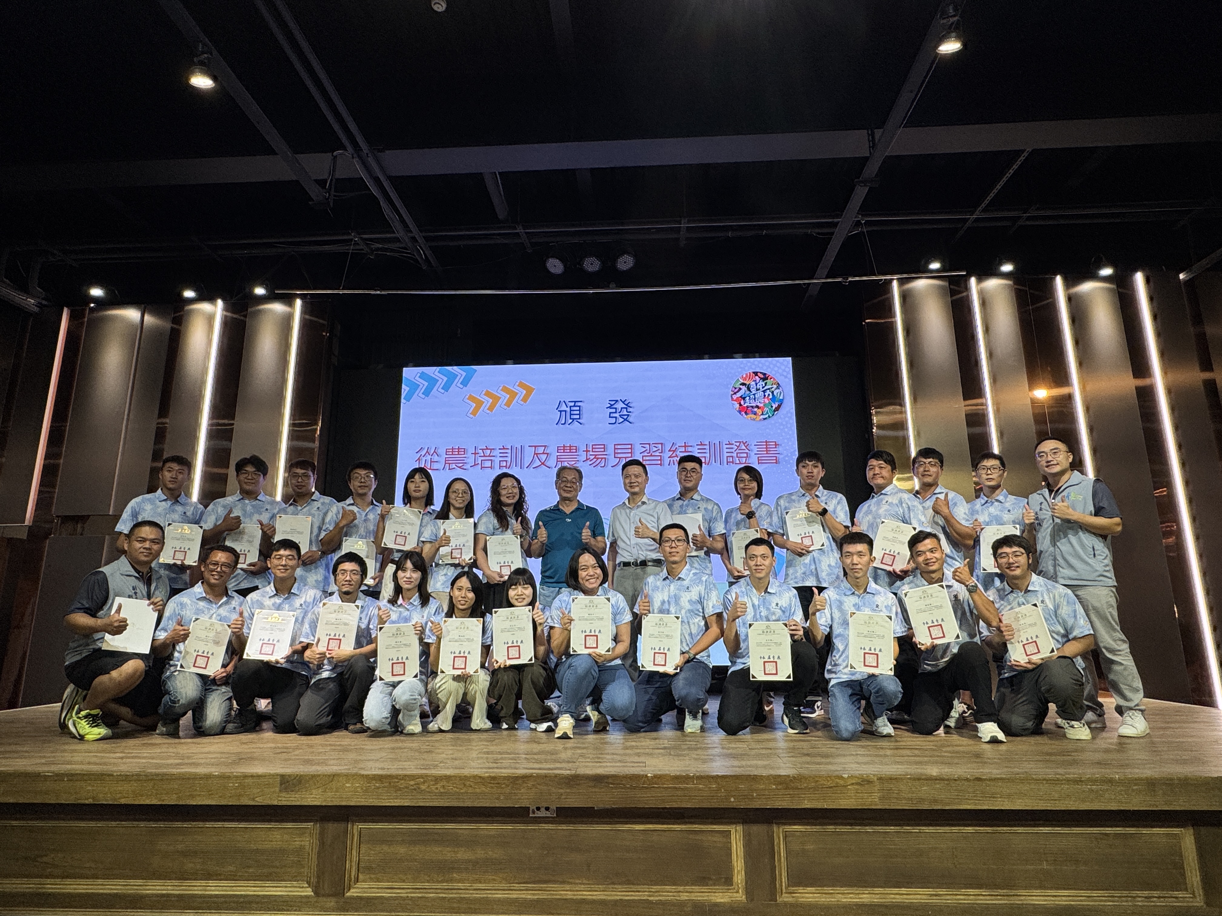 台中市政府農業局今(30)日舉辦「台中市青年農民輔導計畫—青年從農培訓」結訓典禮,共有28位學員順利完成農業基礎課程與農場見習培訓,正式結訓,準備返鄉投入農業行列。典禮現場除頒發學員結訓證書外,亦特別頒贈13位農場主感謝狀,感謝他們提供學習場域,並無私傳授專業栽培技術與經營經驗。農業局也期勉學員們將台中市的輔導資源與所學專業分享出去,吸引更多青年返鄉務農,為地方農業注入新活力。