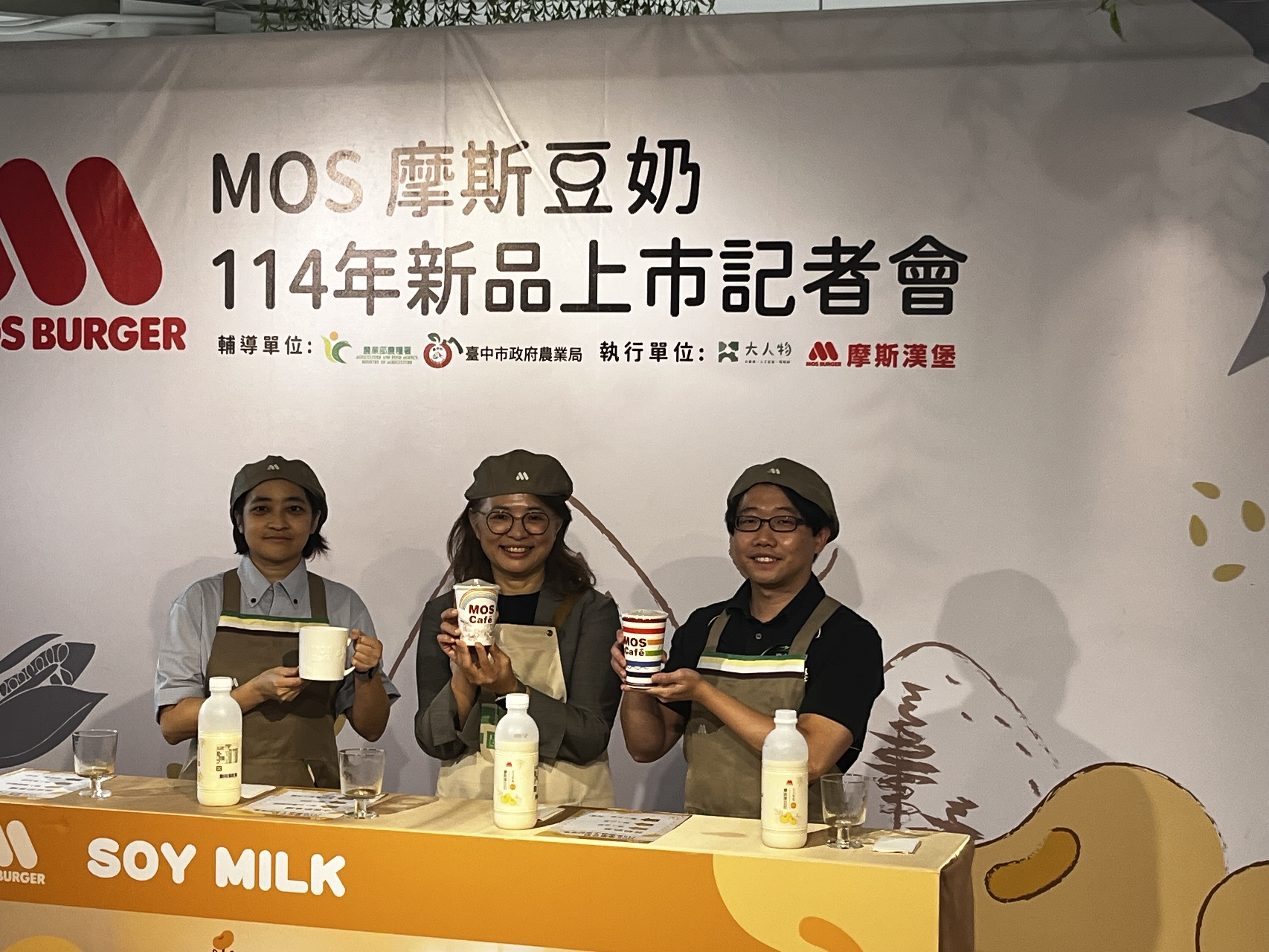 台中市政府農業局致力於推動契作大豆智慧升級,今(30)日與大人物農產運銷合作社及摩斯漢堡聯合舉辦「摩斯豆奶」新品發表會。此次全新產品強調嚴選100%台中契作大豆原料,並導入咖啡、茶等創意飲品,展現農業局攜手企業跨界合作的亮眼成果。