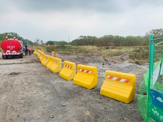 陳局長進一步說明,建設團隊接獲環保局及農業局需求後,立即調派人員與設備支援,除了配合環保局完成1處作業區圍籬架設及2處備用區紐澤西護欄圍設外,亦協助農業局於染疫豬舍設置隔離網,防止犬貓、鼠類等動物進出,降低疫情擴散風險;另為強化防疫層級,建設局今(31)日再投入吊車設備,協助完成上層圍籬設置,進一步封閉疫區邊界,阻絕鳥類及其他動物入侵,有效防止病毒外溢,確保防線更為嚴密。