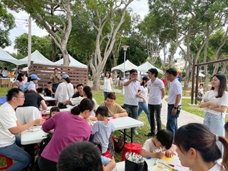 法制局說明,這屆野餐日活動以草地閱讀為共同主題,準備了繪本特色打卡點,到場民眾反應熱烈,紛紛在充滿故事氛圍場景合影留念。活動也安排了圖書館親子說故事時間及魔法森林氣球秀,帶領大朋友小朋友走進充滿想像力的世界。限量的故事繪本DIY,讓親子一同參與製作,更能享受互動與共讀樂趣。此外也設有氣墊遊具同樂區,讓小小孩能在草地充分放電,體現戶外野餐動靜皆宜的特色。活動特別邀請潭雅神社區大學參與,帶來民歌彈場演出,共譜書章與樂章,增添草地閱讀文化氣息。