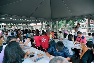 除了精采表演,現場還有豐富多元的闖關遊戲,包括「誰是大作家」、「名言佳句九宮格」、「間諜名著敲敲樂」等寓教於樂的關卡,讓民眾在遊戲中動腦又學習。滿載書香的行動圖書車更是全場亮點,吸引許多親子駐足翻閱。DIY手作體驗(貼葉蒔繪杯墊、變塗小陀螺)、氣球小丑互動與限量棉花糖兌換,也深受小朋友喜愛。周邊的野餐市集則匯集特色農產、輕食及閱讀文創,讓民眾邊品味美食、邊感受書香。