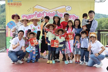 更特別的是,東新國小沈秋宏校長以客語分享「讓天賦發光」,每個小孩有自己的天賦,教育者和父母要讓小孩的天賦被看到;新城國小林益興校長分享「最勇敢的鮭魚羅莎」,希望孩子們像鮭魚一樣逆爭上游實現夢想,不用很厲害才開始,只要能開始就會很厲害!現場還有有趣的Hakka萌客變裝秀,每位家長和小朋友用心裝扮展現自我,其中1組為阿公阿婆陪伴孫仔共下SHOW,以舊衣結合不同客家元素布料,拼接而成的服裝走秀,也讓孫仔了解客家花布的美,最後由江主委和翁區長共同上台頒發客家繪本等獎品,鼓勵大家SHOW出自信。