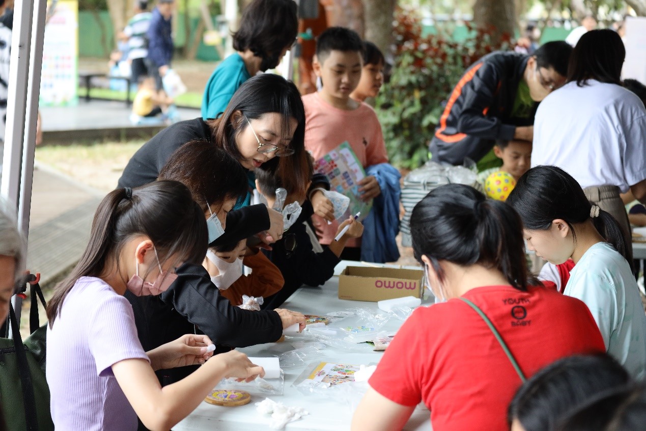 此外,「客家故事屋X大家的SHOW書時光」的環節是本次野餐日的另一份驚喜,故事屋由客語薪傳師講述「貓頭鳥」及「吾屋家个味瑞」繪本,每一位小朋友除了認真地聽著故事,也勇敢地分享自己帶來的書,希望讓所有人在閱讀中找到樂趣。現場聽完故事就獲得DIY體驗券,大小朋友們開心地體驗手作馬賽克杯墊和彩繪波浪鼓,大家享受了一個美好的周末。