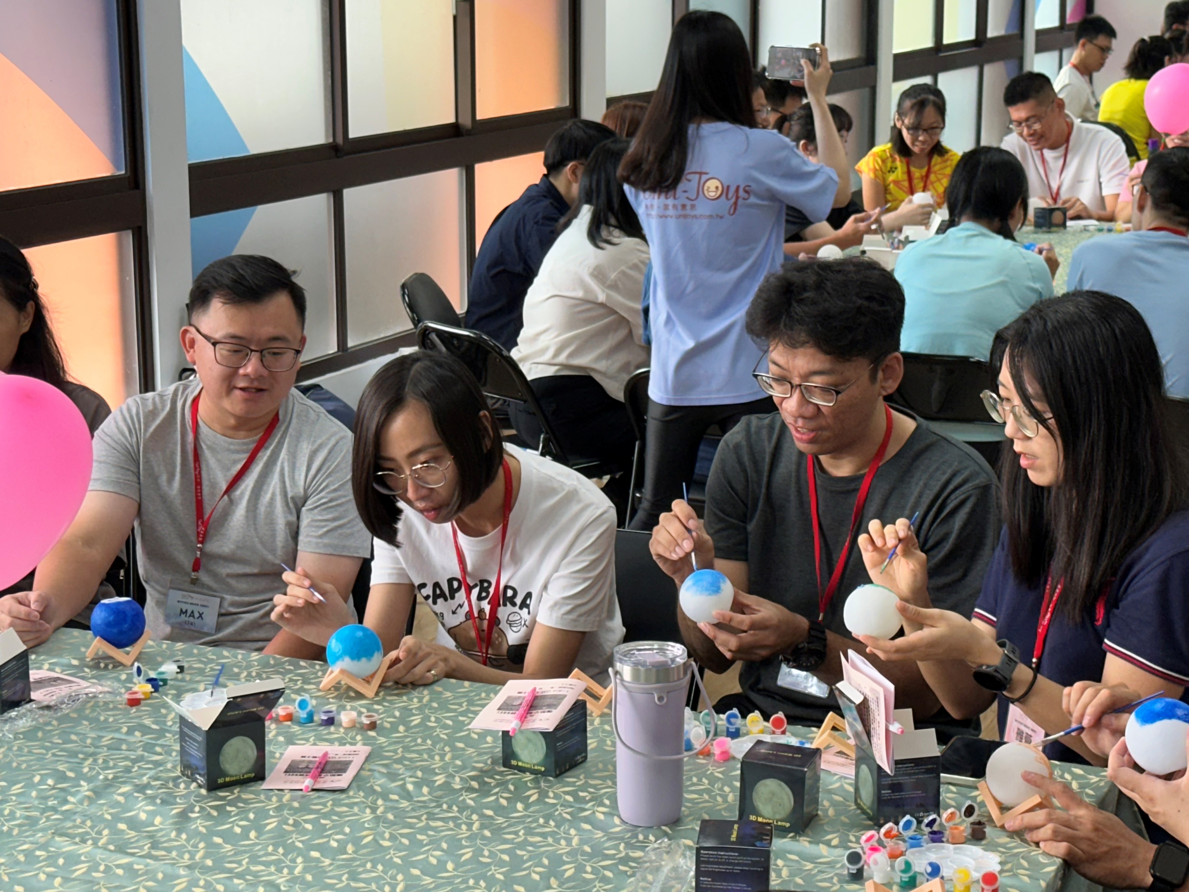 南區戶所主任蕭淑娟表示,此次聯誼以「手繪星球夜燈」揭開序幕,參加者親手製作專屬作品,並可贈予心儀對象傳遞情意;隨後分組進行「羽球趣味賽」,在輕鬆活潑的氛圍中互動交流、培養默契;接著進行「紓壓瑜珈」課程,帶領大家進入身心放鬆的療癒時光,透過雙人協作增進信任與情感連結;活動最後在茶香與甜點交織下,營造浪漫午茶時光,促進交流互動,為後續情感發展埋下甜蜜伏筆。