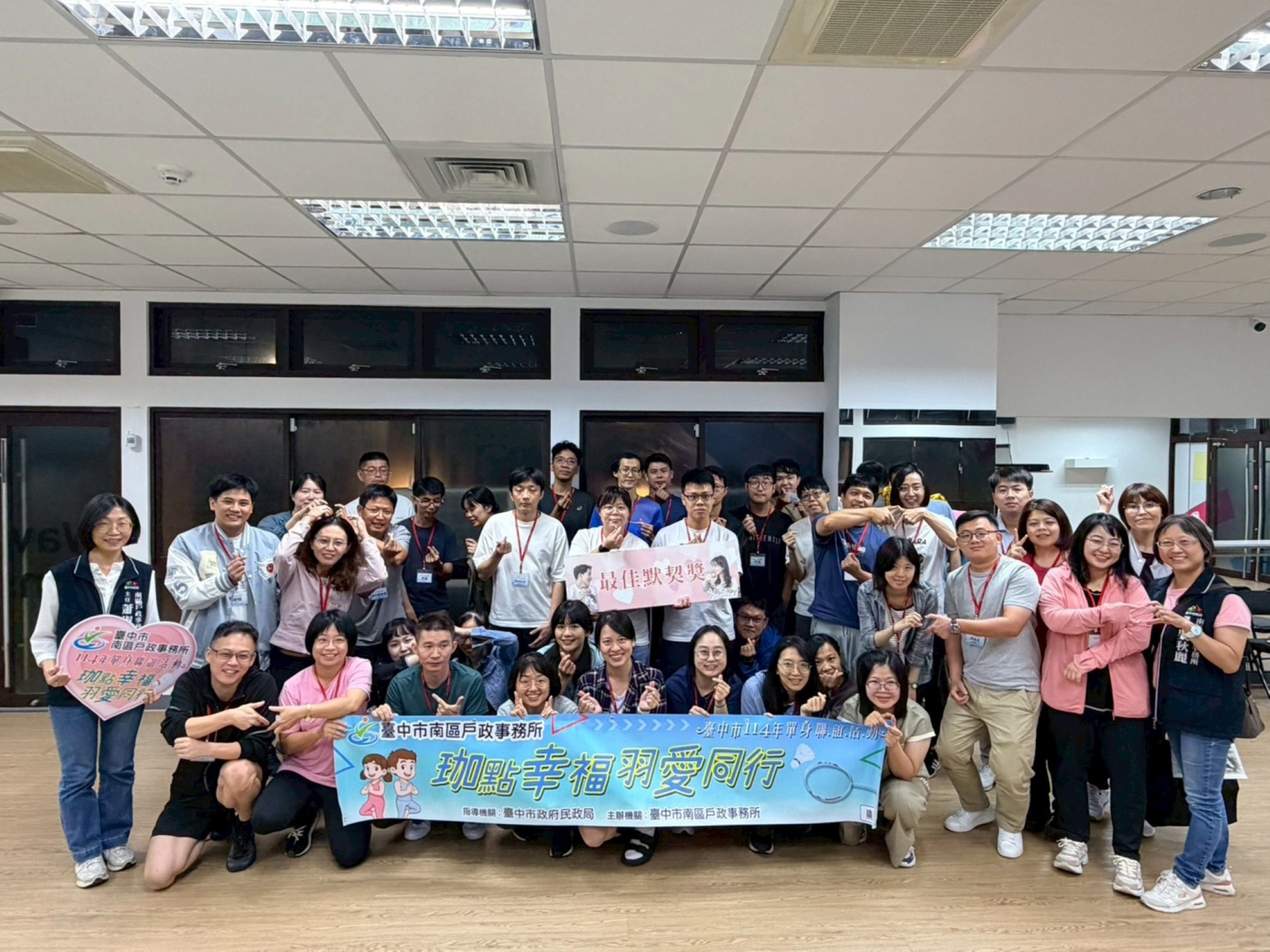 為協助單身民眾拓展交友圈、尋覓良緣,台中市政府民政局攜手南區戶政事務所昨(2)日在長春國民運動中心舉辦「『珈』點幸福、『羽』愛同行」單身聯誼活動,結合手作星球燈、羽球趣味賽、紓壓瑜珈及浪漫午茶等豐富行程,帶領39位單身男女在動靜交融中互動交流,讓浪漫情愫自然萌芽。民政局長吳世瑋表示,此次活動促成18對有緣人互表心意,配對率高達九成四,市府「愛的助攻」持續發威,為單身男女牽起通往幸福的紅線。