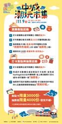 經發局補充,台中購物節除延續天天抽現金、週週抽汽車的好康活動外,為吸引國際旅客熱情響應,今年還增設外國人專屬抽1萬元美金3組,外籍旅客只需持護照註冊「台中通TCPASS APP」並登錄消費發票,即可與本國民眾一同參加購物節抽獎。趕緊下載APP,越早消費越早登錄,就有機會中大獎,最新資訊請查詢購物節官方臉書( https://www.facebook.com/shoppingtaichung/ )。(11/7*7)*經發局