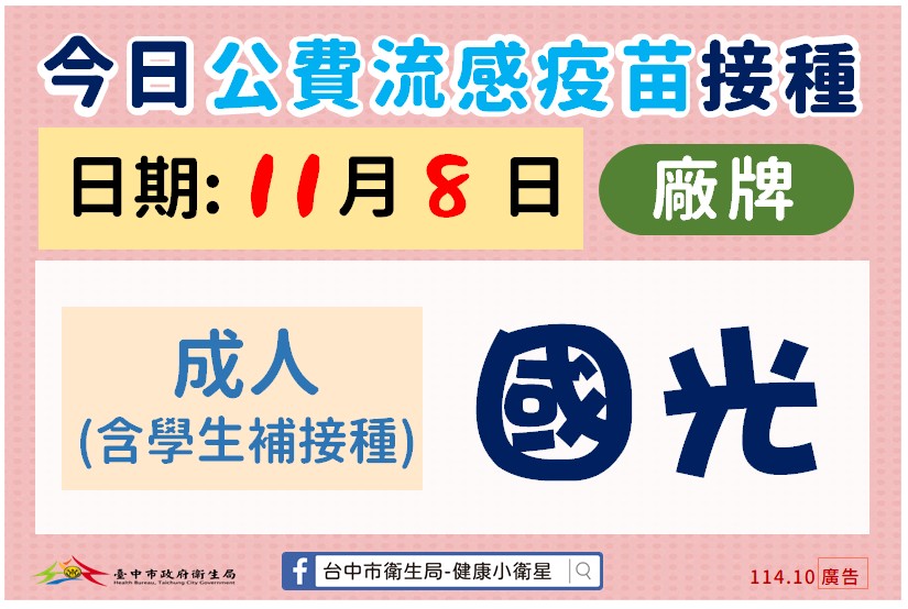114年11月8日假日加開流感疫苗門診廠牌公告說明。