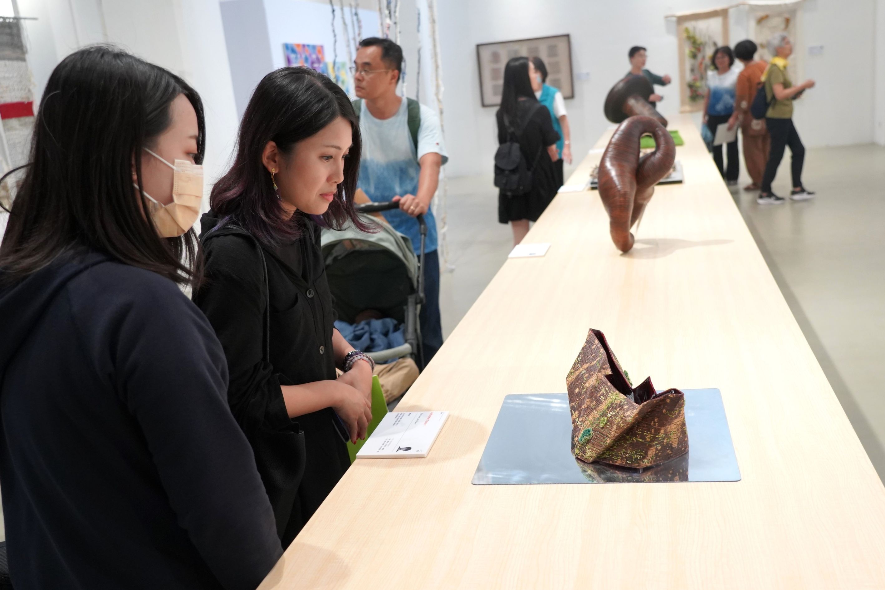 纖博館說明,此屆得獎作品展特別邀請評審委員之一的「中間研究室」總監郭中元擔任策展人,以「取之於自然,用之餘創造」為策展主軸,關注創作者如何從自然環境中汲取靈感,進而將材質本身所承載的文化脈絡與永續思維,透過工藝創造成為一種有力的敘事工具。在「示範交流區」,也特別邀請纖維藝術家楊偉林老師及有「編織女王」之稱的設計師潘怡良參與展出作品,期待與得獎藝術家們對話交流,激發更豐沛的創意靈感。