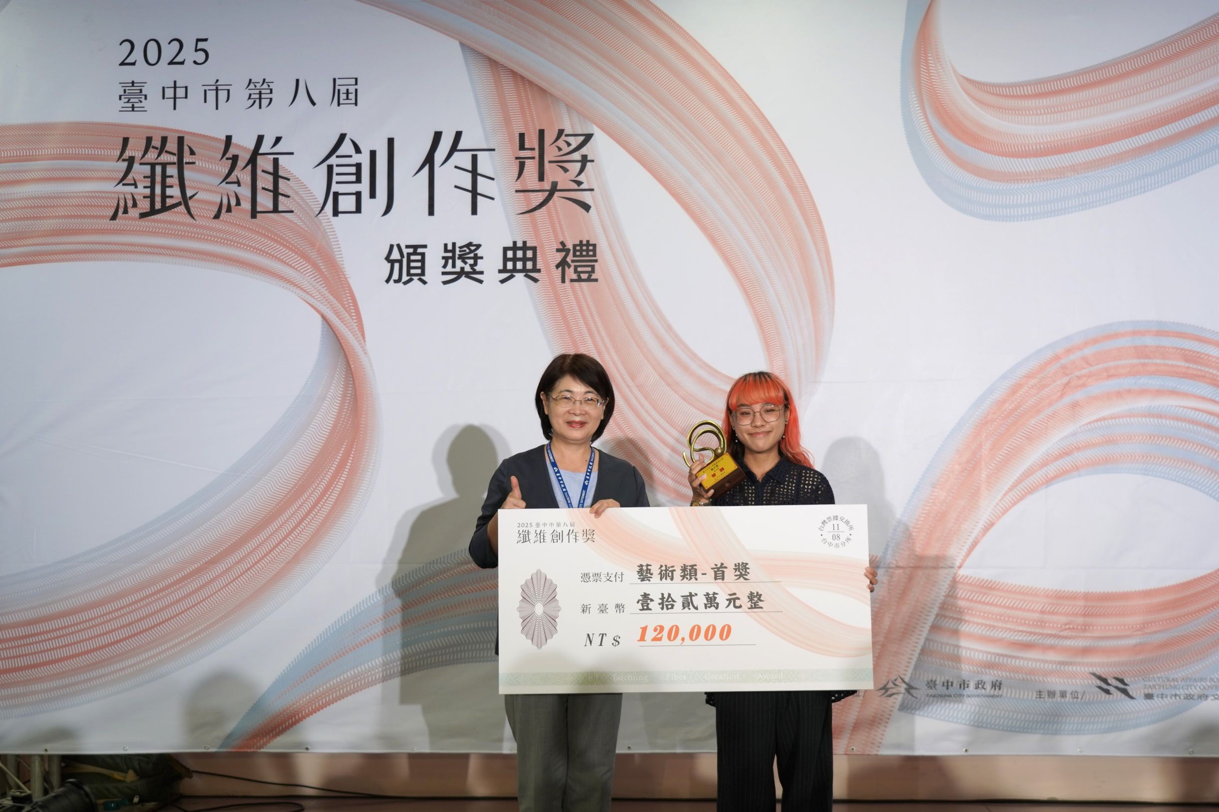 台中市政府文化局長陳佳君表示,台中市纖維創作獎是全國唯一的「纖維」主題徵件競賽,今年邁入第8屆,已成為全國纖維藝術領域最具指標性的創作舞台。今年除了台灣創作者以外,也吸引來自香港、越南等在台居留的外籍人士,共219件作品參賽,經過兩階段評審過程,有「設計類」及「藝術類」前三名、優選及入選共48件作品脫穎而出,頒發總獎金68萬元。這些作品融合多元的纖維媒材、技術和工法,展現創作者不斷挑戰自我、積極創新、追求永續生活的態度,文化局也將積極打造台中市纖維創作獎,未來成為國際化的藝術品牌。
