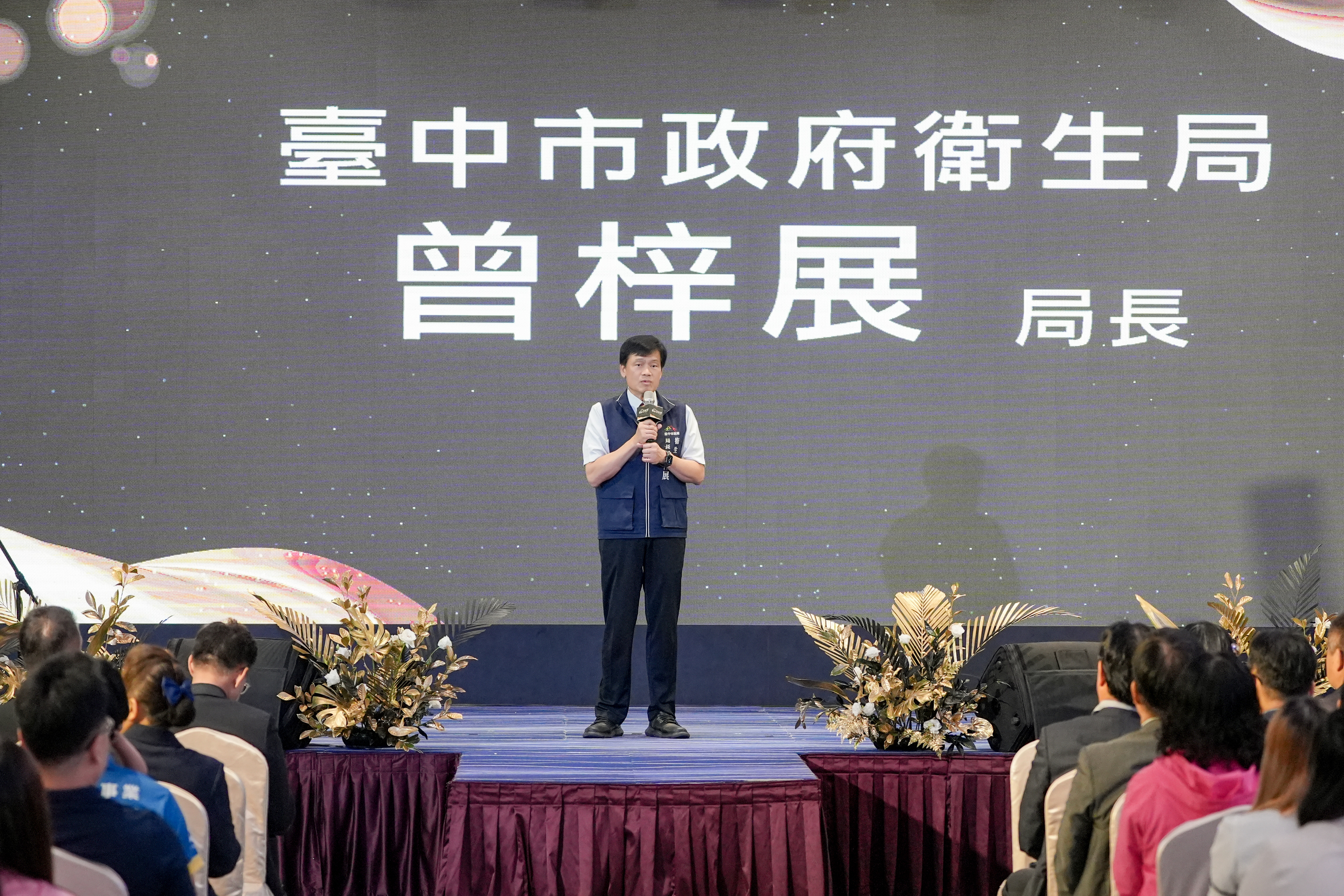 衛生局說明,此屆活動主視覺結合金色與黑色的配色,營造出高貴典雅的氛圍,展現長照服務的專業與安心形象,由台中市政府衛生局長曾梓展帶領入圍者尊榮入場,象徵台中市長照服務是一個專業、自信、堅強且幸福的大家庭。