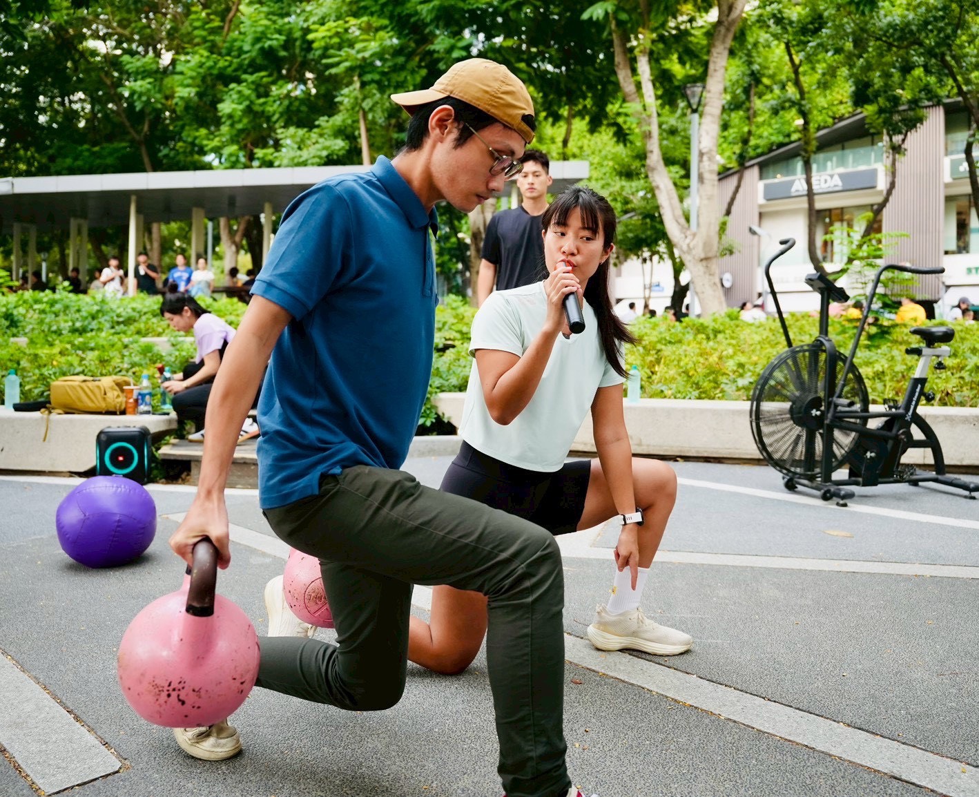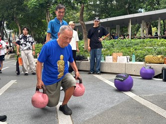 游局長指出,現場設有三大關卡「壺鈴弓箭步」、「拋藥球挑戰」及「風扇腳踏車」,吸引各年齡層民眾踴躍參加。壯壯與許孟哲親自示範動作並與挑戰者互動,加油聲與掌聲此起彼落。其中最吸睛的,是一位高齡80歲的爺爺勇敢挑戰「壺鈴弓箭步」關卡,他穩健地舉起壺鈴、完成全程動作,現場觀眾紛紛報以熱烈掌聲。爺爺笑著說:「年紀大也要動起來,運動才會年輕!」,展現不輸年輕人的熱血與毅力,成為活動現場最勵志的一幕。