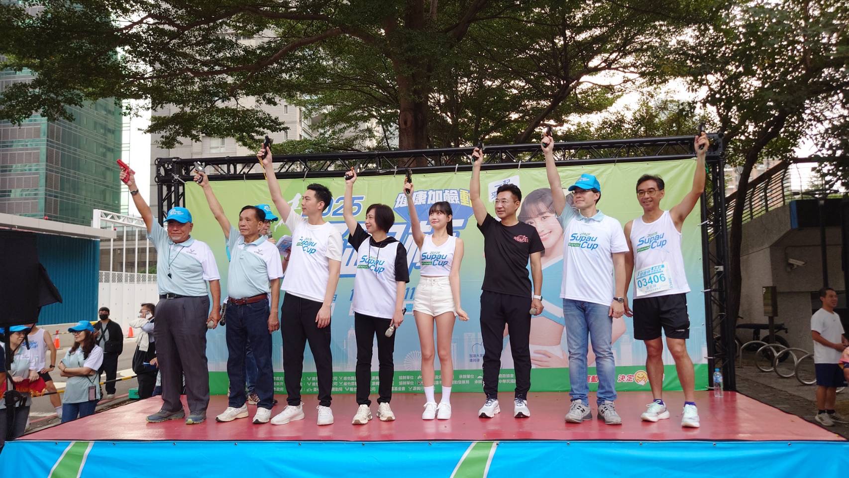 立法院江副院長、運動局游局長、維他露企業邵董事長等來賓與邊荷律一起為跑者鳴槍