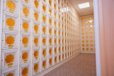 吳局長提到,市府除提升既有殯葬設施的安全品質,也持續擴增各區納骨塔的存放空間,此次沙鹿納骨堂共新增1,521個骨灰櫃位,其中一般型櫃位(30×30×30公分)計1,368個,單櫃收費為3萬元;另因應部分家屬將骨灰再研磨,櫃位空間需求較小,特別設置全市首創的小型骨灰櫃位(30×18×30公分)153個,外觀設計簡約溫馨,單櫃收費為2萬元,除有效提升空間利用率,也能減輕家屬經濟負擔,提供更多元、彈性的安奉選擇。