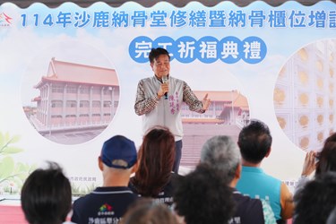 台中市沙鹿納骨堂建於民國88年,使用26年來受海風侵蝕致屋瓦損壞為維護公共安全及環境品質,市府投入總經費1,430萬元啟動屋瓦修繕及防水層更新,並增設1,521個骨灰櫃位,滿足地方安奉需求。民政局吳世瑋代表市長盧秀燕今(10)日出席完工祈福典禮表示,此次補強除強化建物安全、提供家屬安心追思的環境外,更首創小型骨灰櫃位153個,設計簡約溫馨,提升空間利用率並減輕民眾負擔,展現市府持續優化殯葬設施的決心。