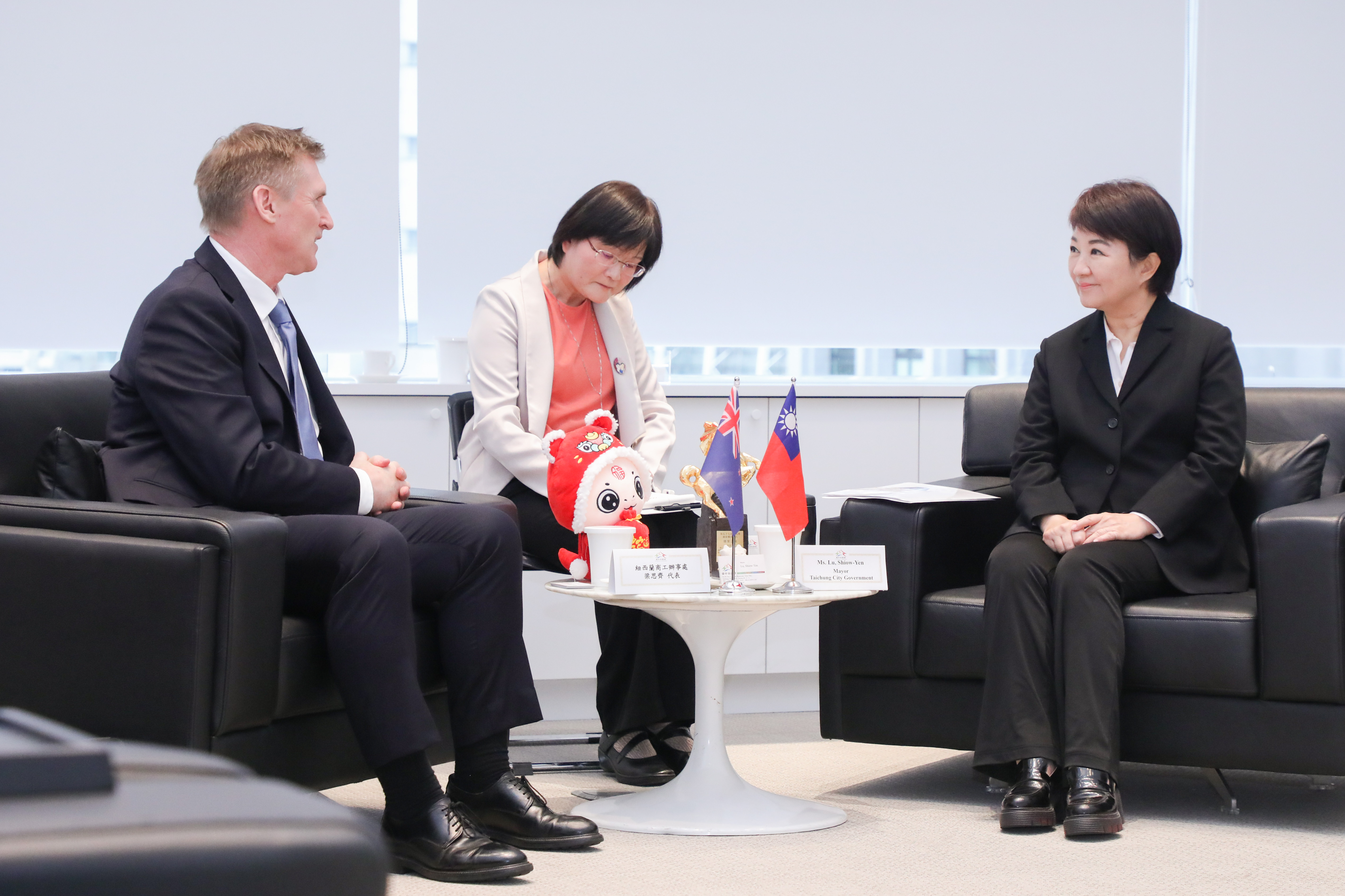 紐西蘭商工辦事處新任代表梁思齊(Director Chris Langley)今(11)日拜會台中市政府,由市長盧秀燕親自接待,雙方就台紐經貿、文化及教育合作等議題熱烈交流。盧市長期盼未來在經濟、觀光與學術領域持續擴大合作;梁代表肯定台中科技產業實力與城市發展潛力,並表示願作為橋梁推動雙邊多層面互動。