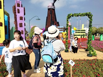 因應颱風鳳凰氣象署發布陸上警報及台中市府公布停班停課,台中國際花毯節為維護遊客及展區裝置安全,於11、12日預警性閉園,今日宣布明(13)日重新開園!園區經市府團隊及工作人員將裝置重新歸位,已全面恢復繽紛樣貌。今年以經典卡通頻道《飛天小女警》為靈感,將備受喜愛的動畫元素與花卉藝術結合,吸引大批遊客搶先入園拍照打卡。