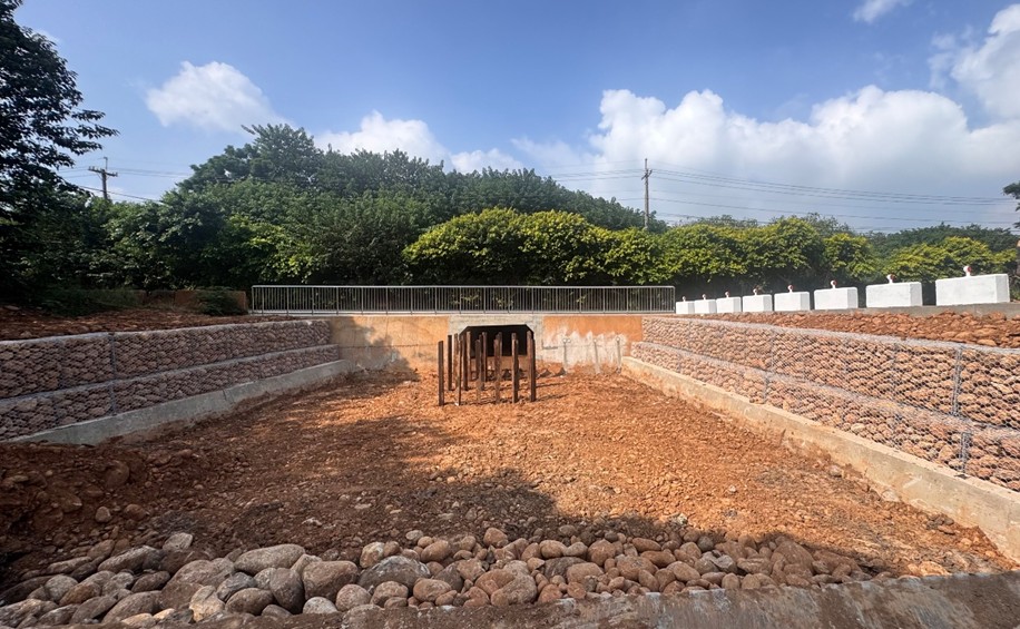 市府積極向農業部爭取補助經費約820萬元,辦理「台中市沙鹿區犁分里竹林南溪竹東段470地號野溪整治工程」,主要施作內容包括河道整理約200公尺、靜水池1座及過路箱涵約75公尺,工程透過河道整治與增設過路排水箱涵,改善野溪與下游水系銜接情形,有效提升排洪與防災能力。