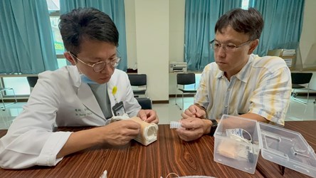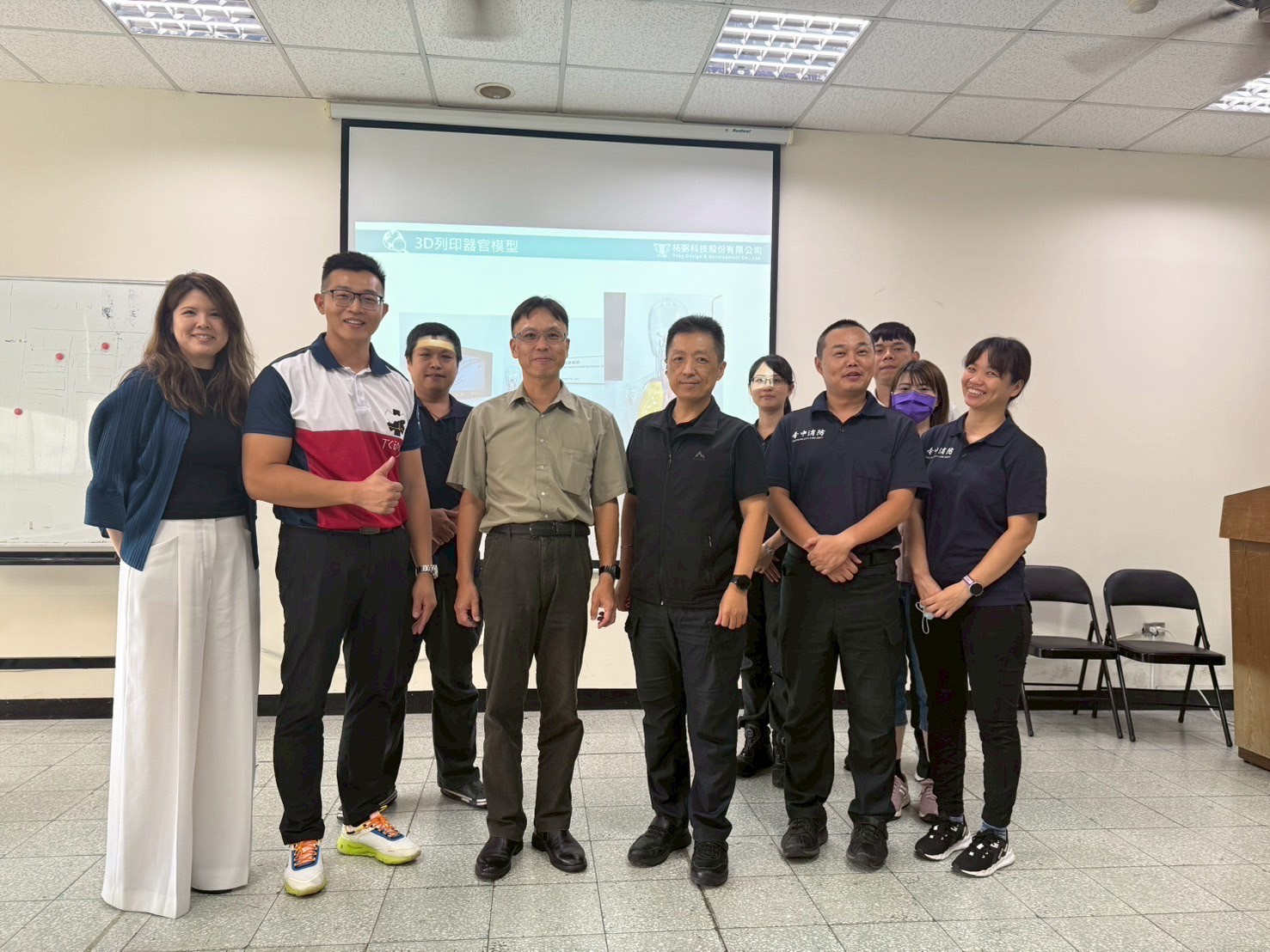 消防局指出,這款模具凝聚急救實務、臨床醫學與3D列印科技三方專業的力量,由郭股長與莊教官提供第一線操作經驗,確保設計能真實模擬各類臨場情境;黃醫師從醫療指導角度嚴格把關解剖精準度與操作流程,確保模具符合臨床實務;翁博士則帶領團隊運用生物相容性高分子材料列印,精細重現皮膚、軟骨與氣管壁觸感,並結合CAD建模與多次原型測試,最終打造出可替換組件、能模擬多重情境的高擬真訓練模具,充分展現跨領域合作的創新成果。黃醫師指出,有了專利與在地研發優勢,我們能依中市救護訓練需求持續優化模具設計,使教具更貼近實務、訓練更具效率。