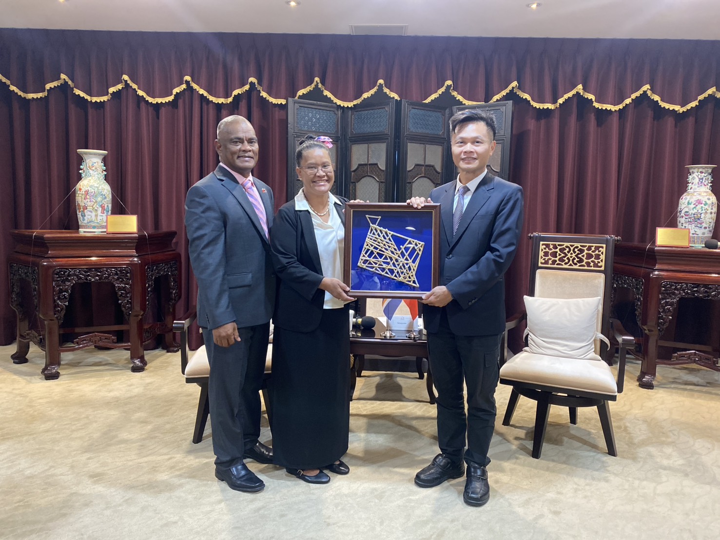 林副秘書長指出,2021年台中市纖維工藝博物館曾舉辦馬紹爾群島編織工藝特展,透過展覽作品及藝文交流,讓市民能更加瞭解馬紹爾的特色及傳統工藝並留下深刻印象,象徵兩地緊密的文化連結。