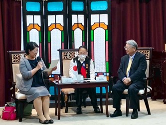今日會談溫馨熱絡,包括副市長佐佐木京子、主查和田健一、龜岡市中學教頭高橋陽子等出席交流;市府除副秘書長林育鴻、執行長令狐榮達,副局長文化局施純福、秘書處副處長李政峯、教育局主任秘書陳雅新、農業局主任秘書黃春滿亦陪同出席。(11/13*17)*秘書處