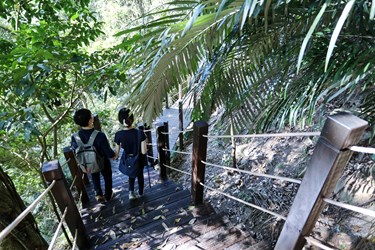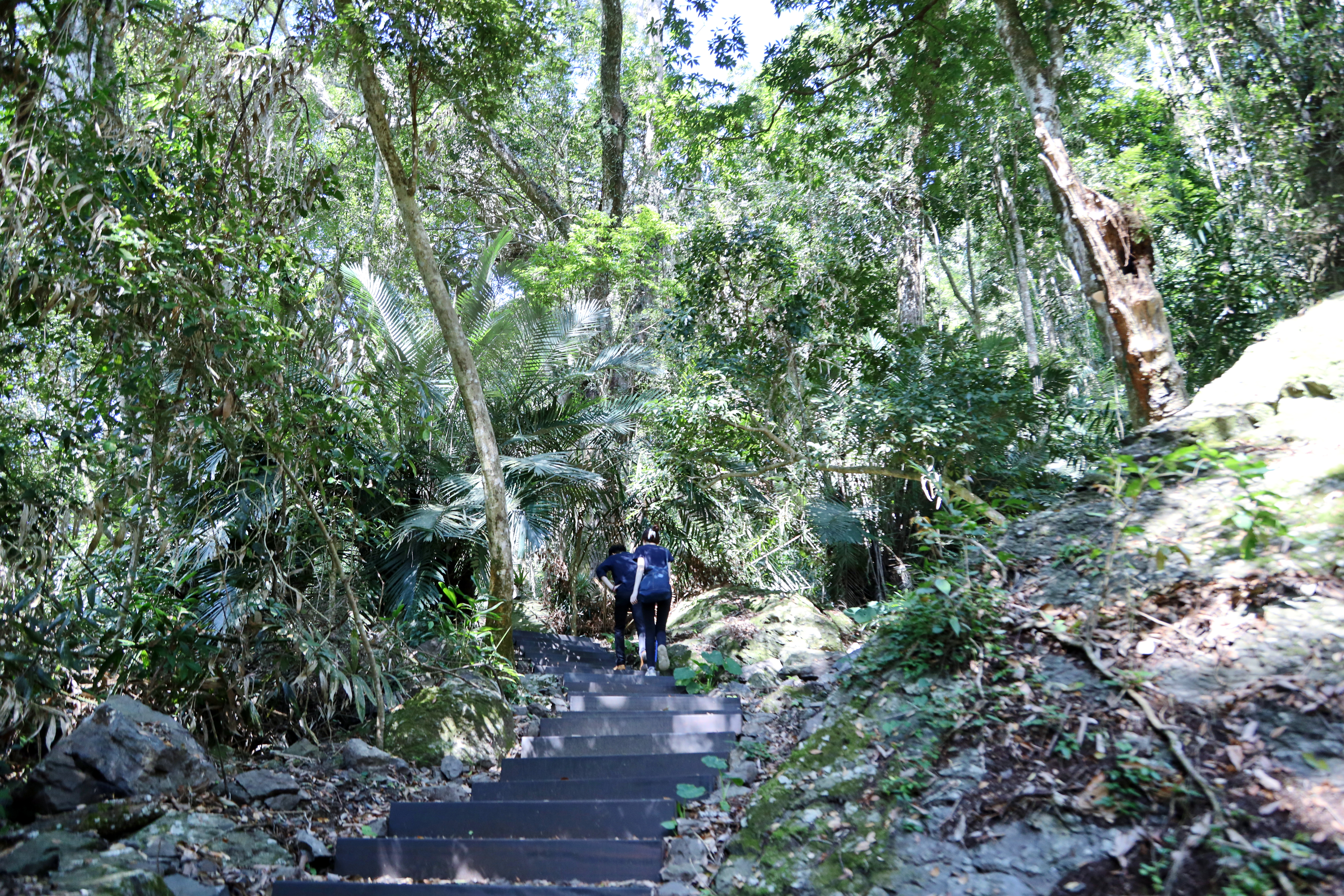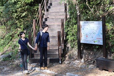 觀旅局表示,這次工程以「尊重自然、融入文化」為核心理念,施工過程採最小環境擾動原則,主要使用原木材料與現地石塊鋪築砌石階梯,並於步道節點設置融合泰雅族圖騰、台灣黑熊及石虎意象的設施,展現地方文化與生態保育共融精神,讓遊客在登山健行過程中體驗原民文化與山林生態之美。