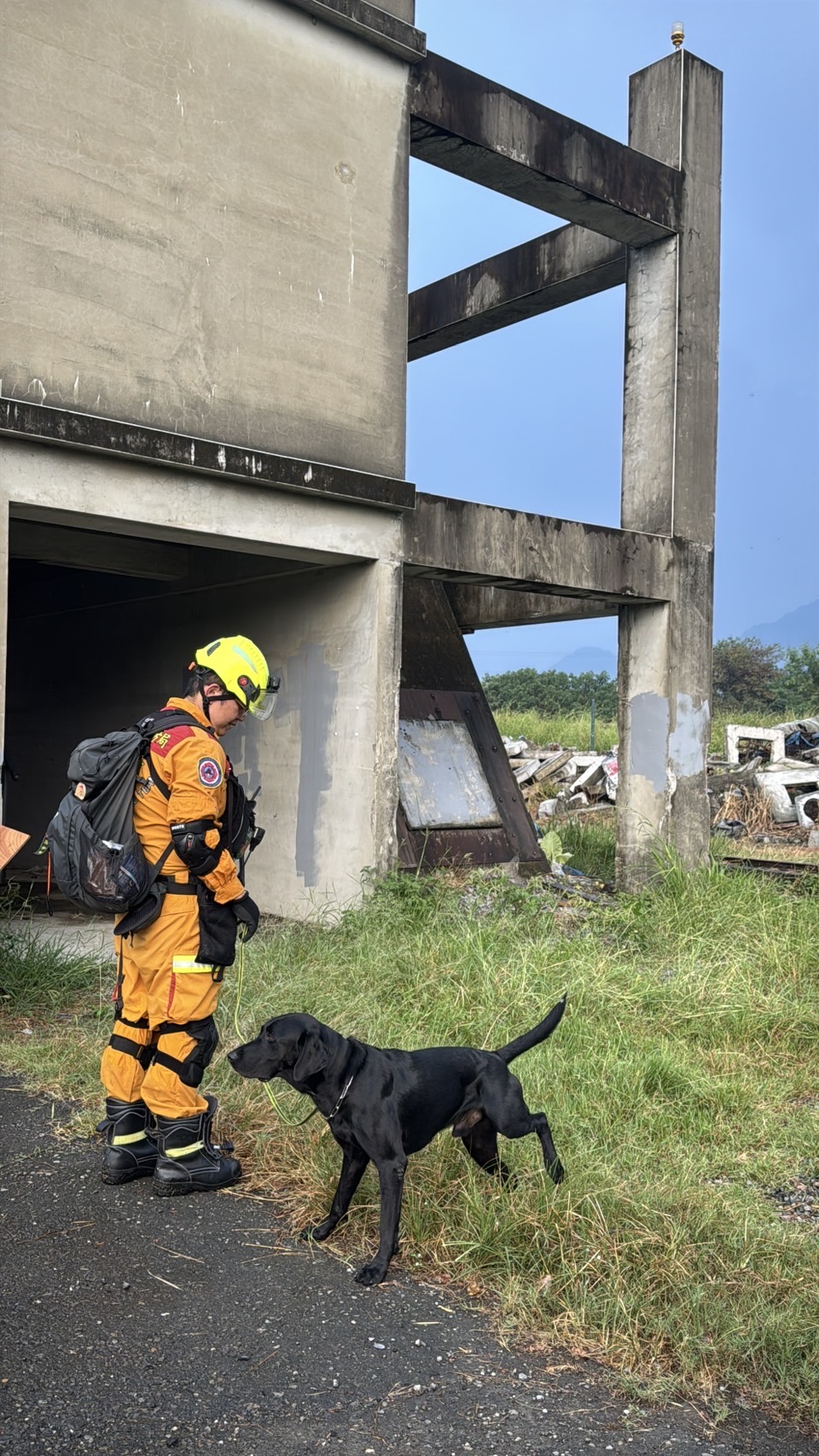 搜救犬是重大災害現場中不可或缺的「生命探測夥伴」,能在瓦礫堆或廣大山區中迅速搜尋被困人員,是搜救任務中最具效率的生命偵測戰力。目前消防局搜救犬隊計有領犬員6人、搜救犬8隻,包括路徑搜救犬3隻、瓦礫搜救犬4隻及具雙功能任務犬1隻。為維持犬隻及領犬員的最佳默契與反應力,平時除定期於城市、山區及模擬倒塌環境訓練外,亦持續參與國際專業課程,結合德國、美國等先進國家訓練理念,逐步建立符合INSARAG國際搜救標準的作業流程。