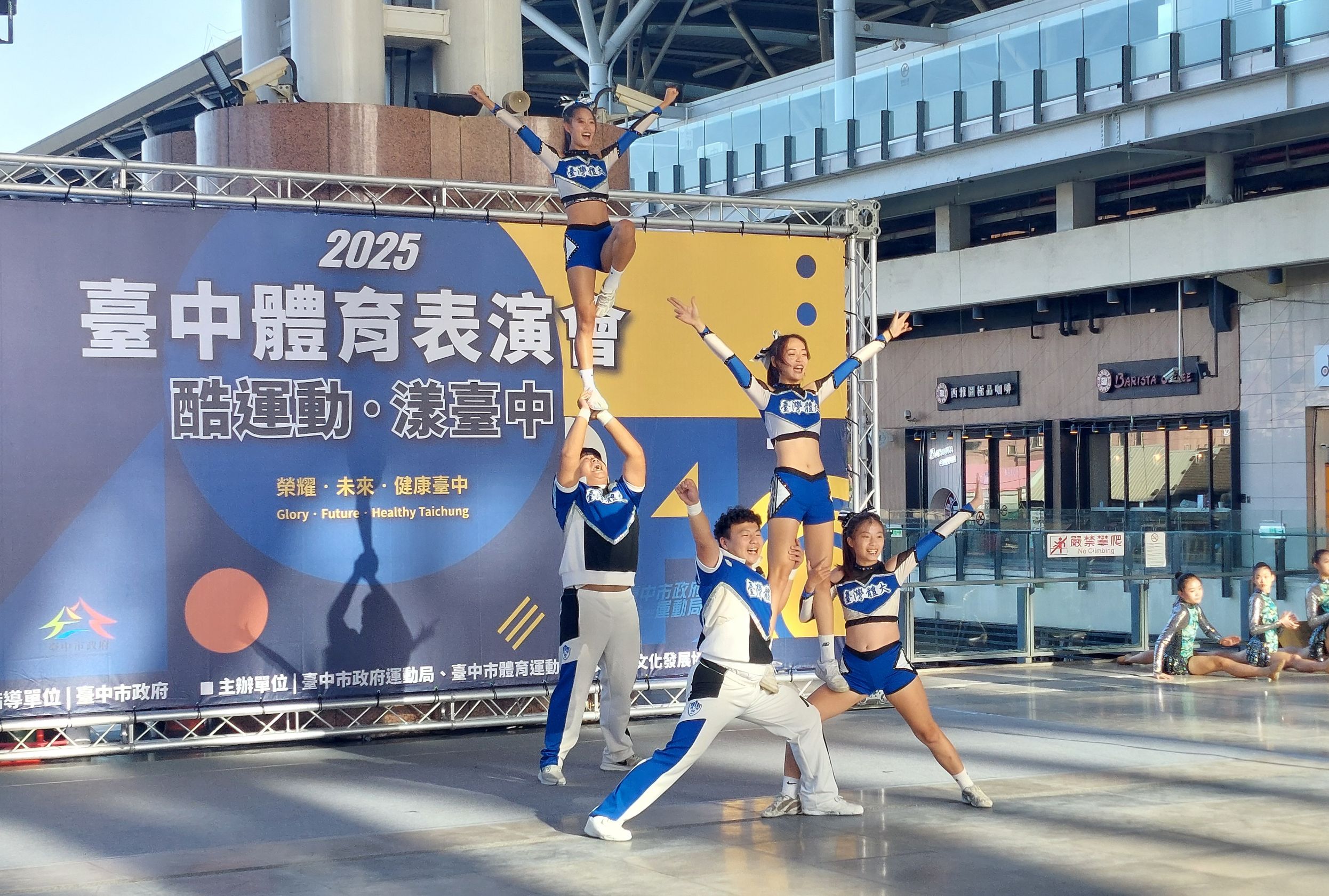 主辦單位說明,呼應奧運增添新興運動的趨勢,活動特邀台中在地舞蹈團隊-L.E style李羿萱舞蹈團、BEACON STUDIO帶來《街舞Showtime》,展現街舞文化的創意與專業;台中市立東山高中與國立台灣體育運動大學共同帶來《青春啦啦隊》演出,以熱力與節奏點燃全場;由台中市立中港高中呈現跆拳道《品勢》的壓軸表演,以磅礡武術展現力與美的結合,贏得滿場掌聲,為活動畫下精彩句點。