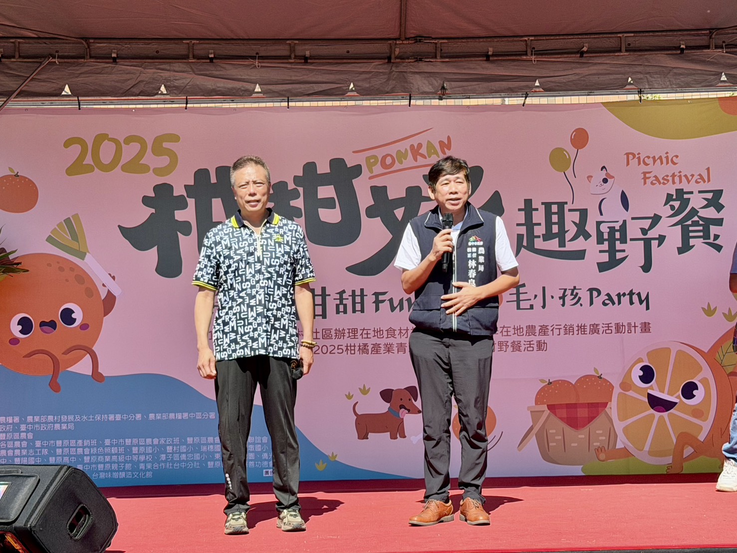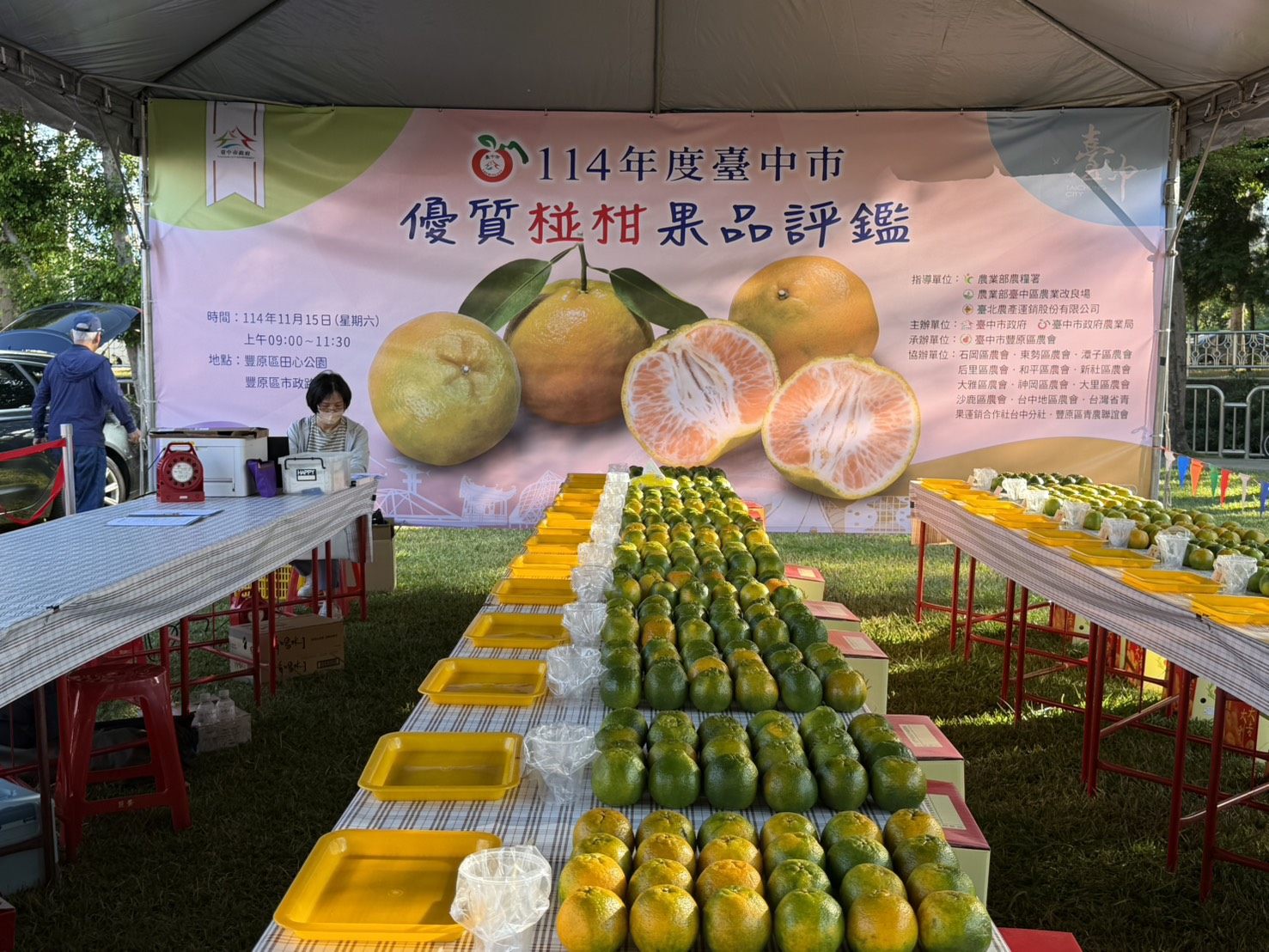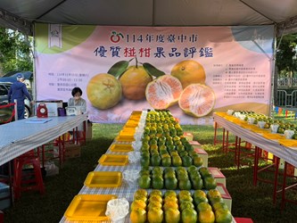 台中雨量充沛,農民栽培技術純熟,椪柑主要產區為東勢、豐原、北屯、石岡及新社。為提升果品品質並保障消費者食用安全,台中市政府農業局輔導豐原區農會,今(15)日於豐原區田心公園舉辦「柑柑好趣野餐」系列活動。現場除舉辦台中市優質椪柑評鑑競賽,也安排「柑橘大蔥野餐派對」、「椪柑創意著色畫競賽」、「親子柑橘料理DIY」、「大型氣墊城堡遊樂園」、「毛小孩放電園地」等活動,並設置具當地特色的裝置藝術供民眾拍照打卡,邀請大家認識豐原在地好產品。