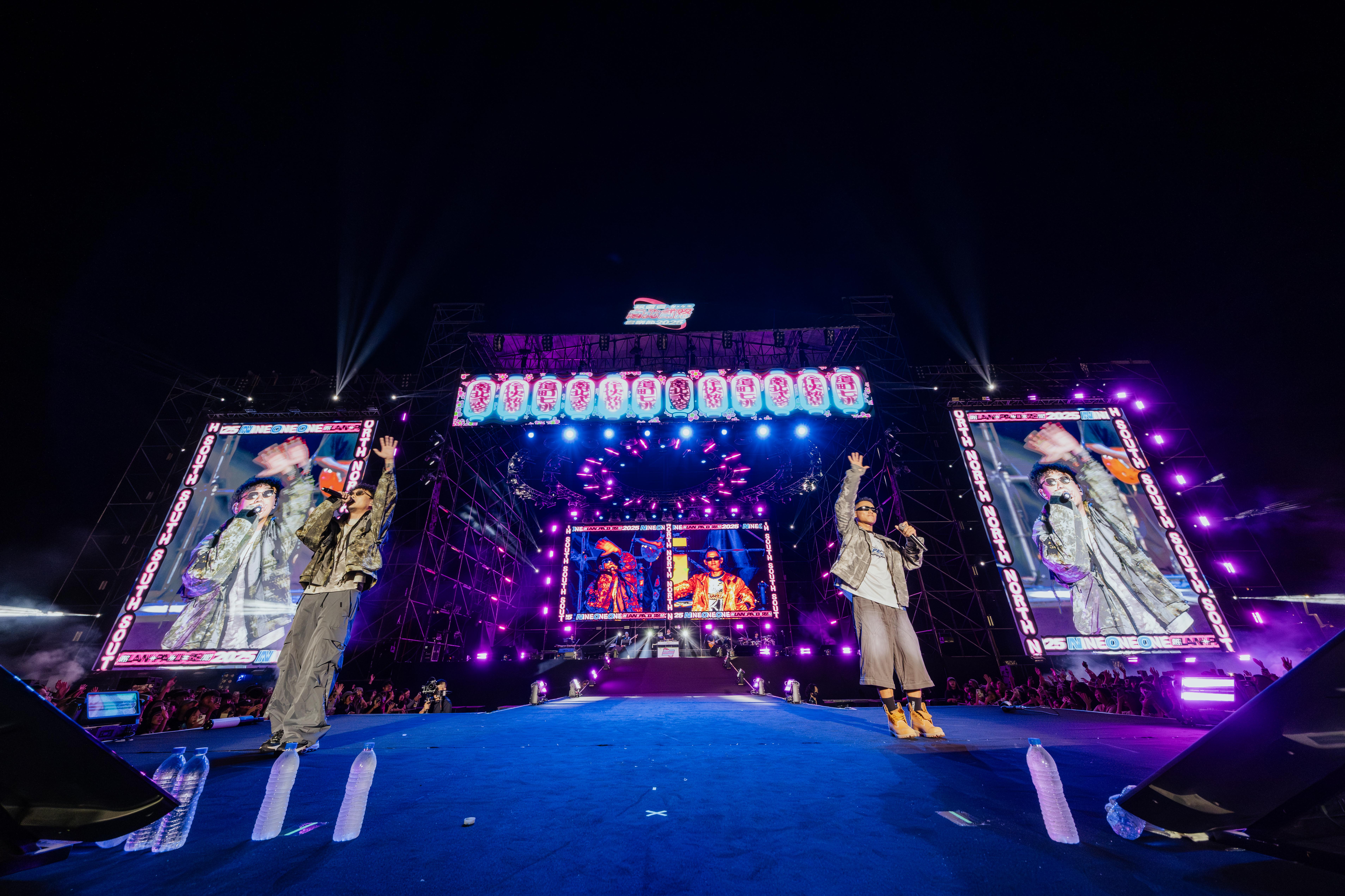 2025《玖壹壹南北貳路音樂節》由KKLIVE與混血兒娛樂主辦,台中市政府新聞局合辦。昨 (15 )日在台中水湳中央公園熱力開唱,成軍16週年的「國民天團」玖壹壹與眾多重量級歌手共同登場,首日吸引超過5萬人次共襄盛舉,兩天活動預估突破 10萬人潮,帶動城市人氣與觀光熱度,將台中夜晚點燃成最熱鬧的音樂嘉年華。