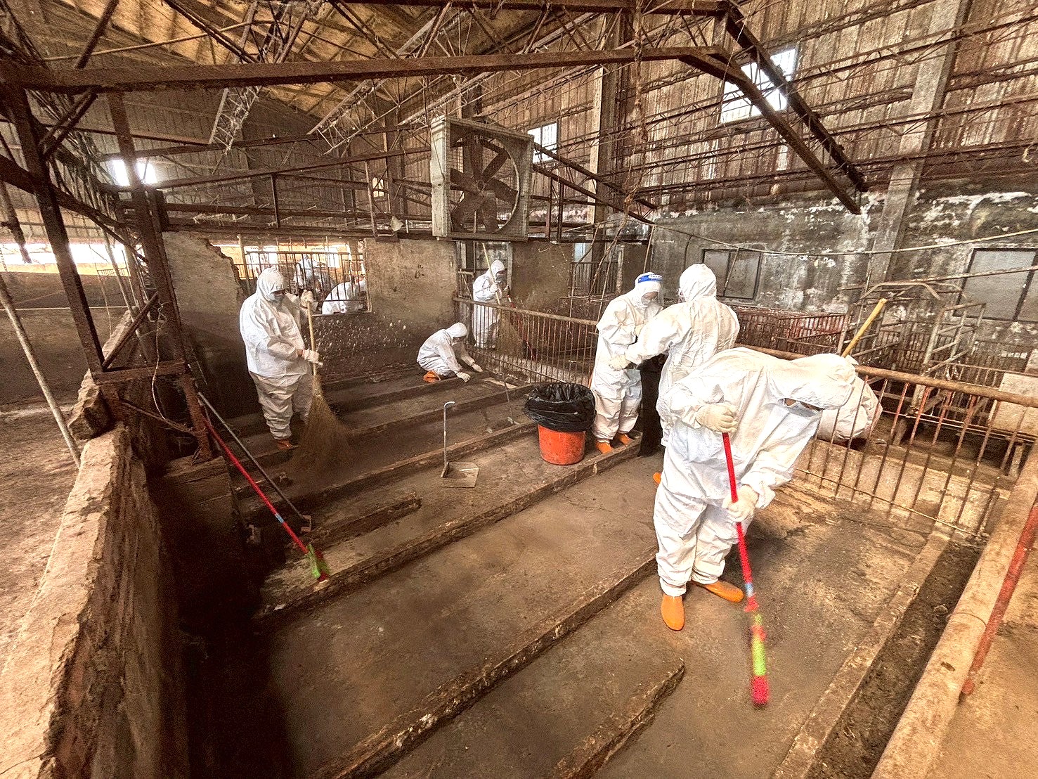 市府說明,昨日共動員33位同仁以乾式方式進行環境清潔,針對畜舍內外環境、設備及易積存有機物質處,逐點鏟除、刮除並清理雜物,同時協請環保局以密閉式垃圾車送往焚化爐銷燬。