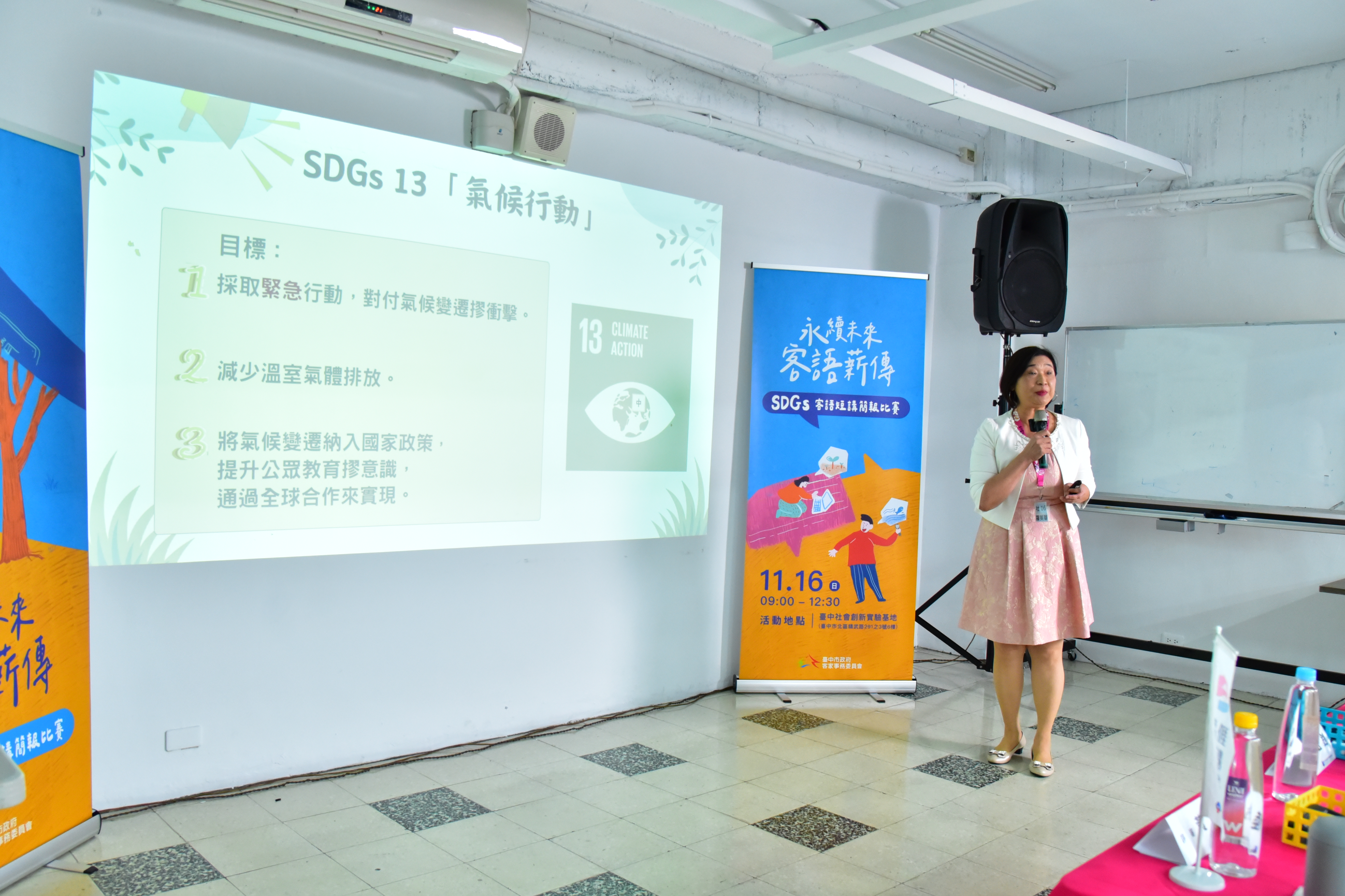 為推動客語扎根家庭、校園及社區,並培養年輕世代以客語關懷世界議題,台中市政府客家事務委員會今(16)日上午於台中社會創新實驗基地舉辦《永續未來・客語薪傳-SDGs客語短講簡報比賽》,20位設籍、就讀台中市的學生、青年、社會人士以客語分享對聯合國永續發展目標(SDGs)的創見,現場氣氛競爭熱烈,個個參賽者展現青年世代全程以客語述說S D G s的世界觀,展現自信與創意。