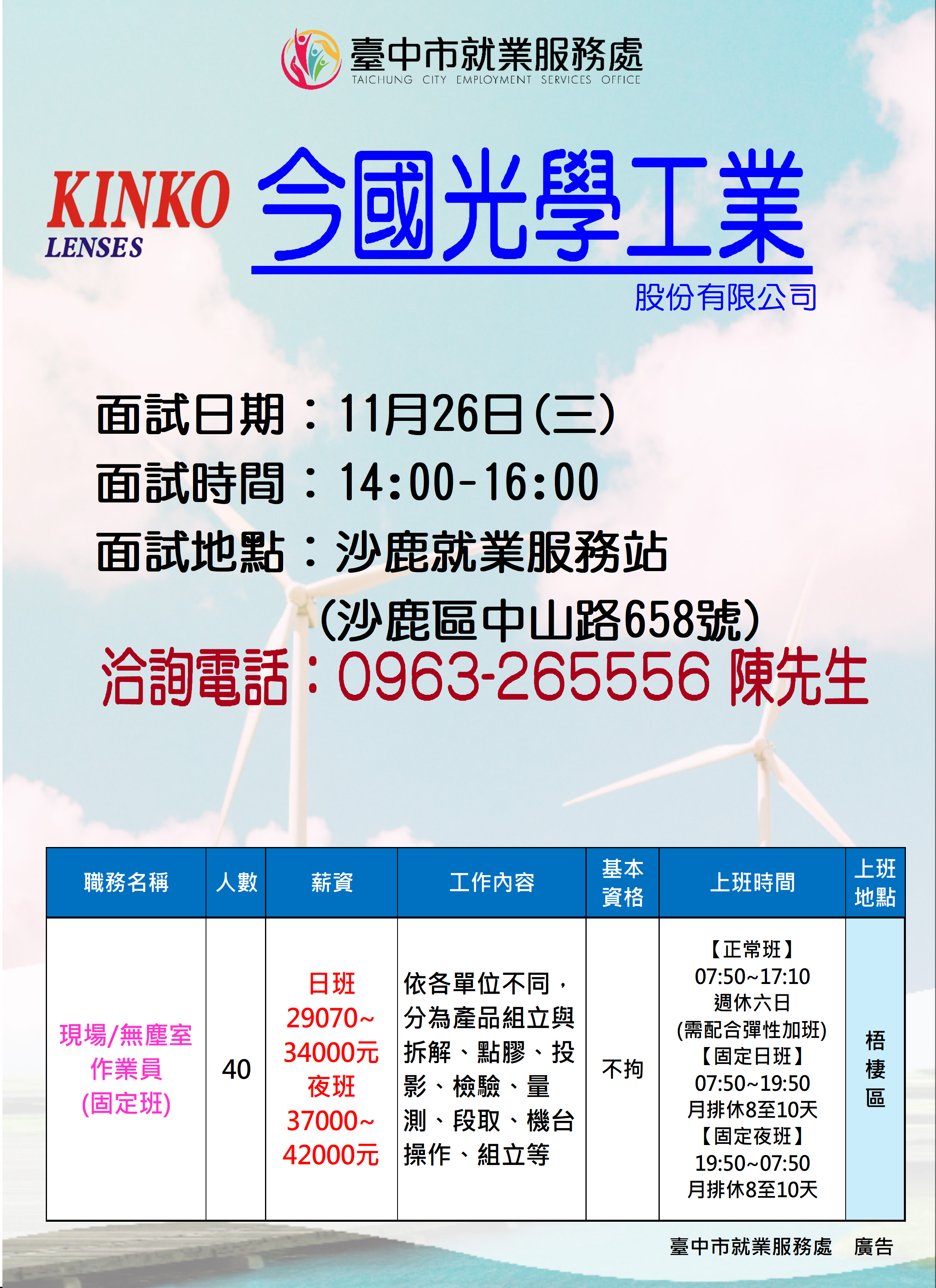 活動地點:沙鹿就業服務站(沙鹿區中山路658號)