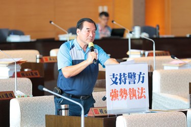 台中市議會今(17)日進行定期會市政總質詢,市議員賴義鍠針對台中市食品藥物安全處主動查獲、通報芬普尼毒蛋,卻遭無良政客誣賴食安處基層,更稱這個政府治國無步,只剩抹黑、抹紅這兩步,種種事跡無法容忍。對此,市長盧秀燕表示,替基層感到委屈,應多為同仁鼓勵、打氣。