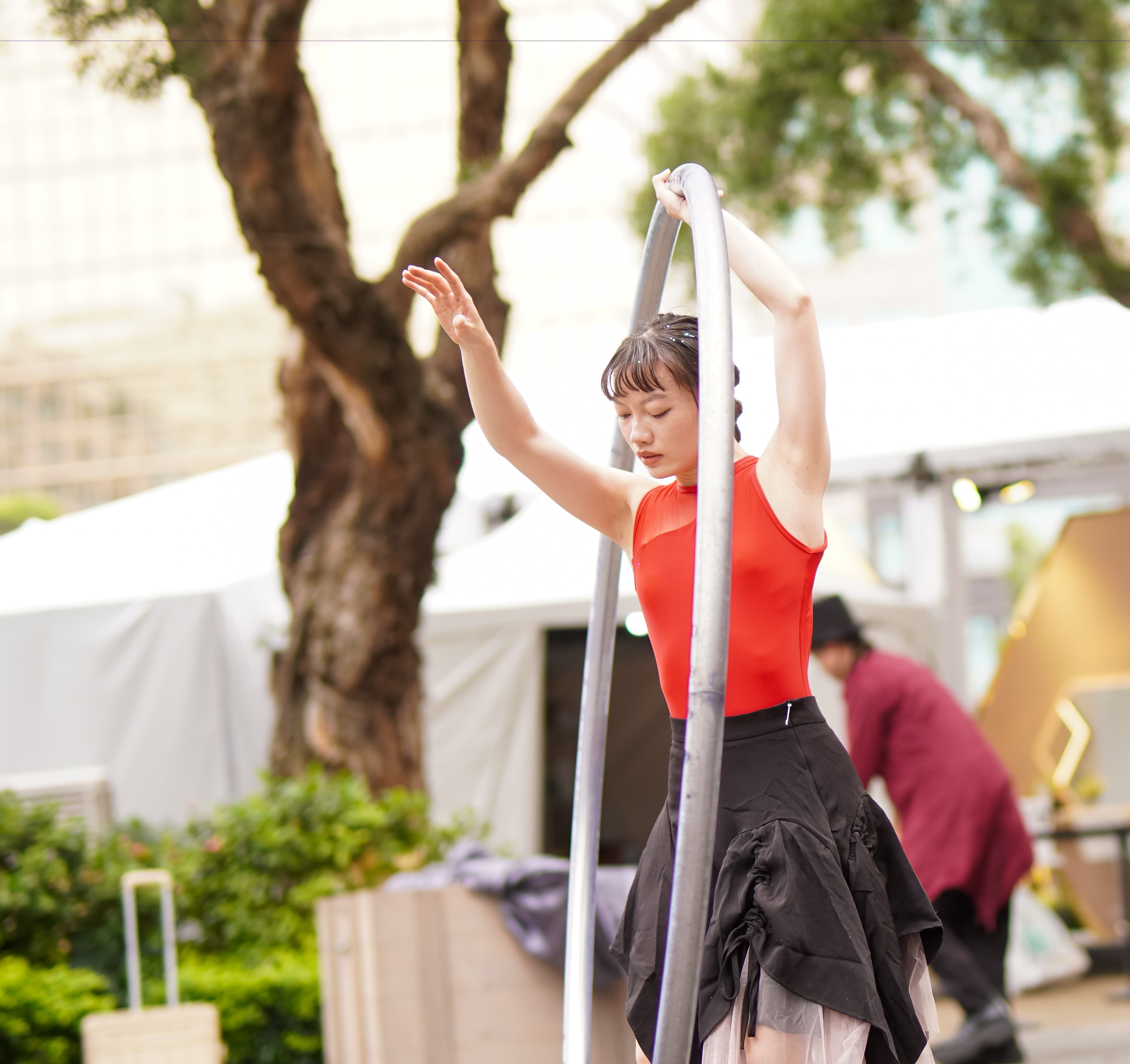 以長紗poi結合身體律動,小不點以優美舞蹈與觀眾互動,小小身軀轉動大大鐵環特技,節奏緊湊、視覺強烈,從開場到壓軸循序推進,層層堆疊觀眾的驚喜與情感張力,打造一場融合幻想與力量的沉浸式舞台體驗。
