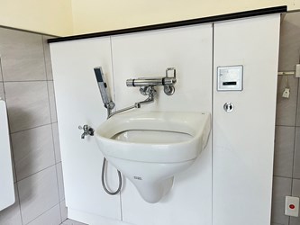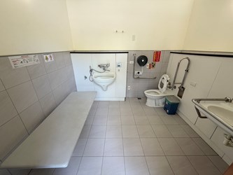 陳局長說明,內部空間依手冊規範配置適當廁間數與坐蹲比,並設置親子廁所及性別友善廁所,同步導入「可掀式照護床」、「人工肛門污物盆」、「手洗器」等貼心設備,全面提升無障礙空間的使用便利與整體品質,深獲評審肯定。