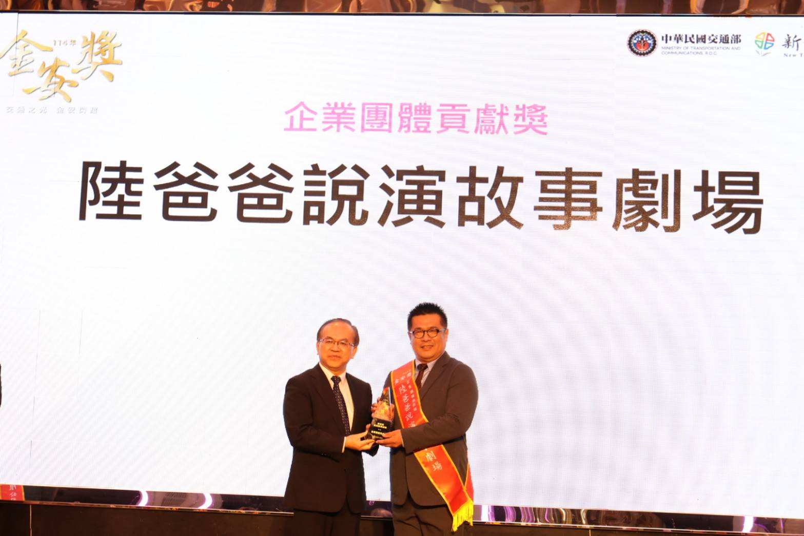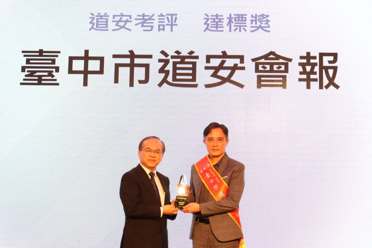 交通部今(21)日舉辦「道安金安獎」頒獎典禮,台中市政府一舉榮獲三項大獎!其中「113年執行道路交通安全執行成果考評」、「交通執法組」摘下雙金,台中市道安小組成員推薦「陸爸爸說演故事劇場」獲得「企業團體貢獻獎」。台中市政府交通局長葉昭甫表示,將連中三元的榮耀獻給市民,市府將持續以智慧、人本交通,讓台中成為「行得安全、走得幸福」的宜居城市。
